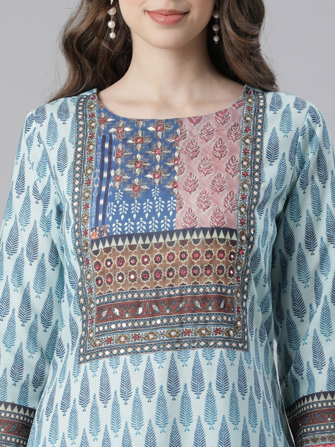 The Neerus Blue Printed Straight Kurta, Trousers, and Dupatta combine traditional style with modern comfort. Made with premium quality materials, you'll feel confident and sophisticated in any setting.