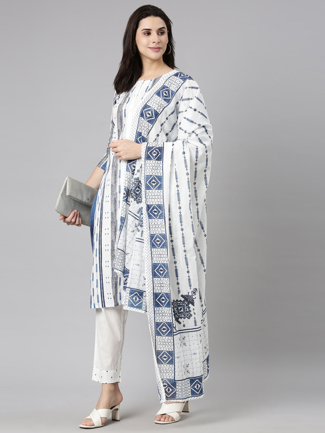 Neerus Blue Regular Straight Textured Kurta And  Trousers With Dupatta