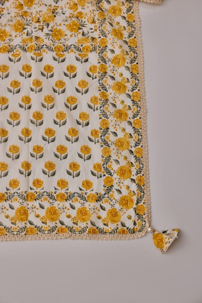 Neerus Cream Flared Embroidery Kurta And Trousers With Dupatta