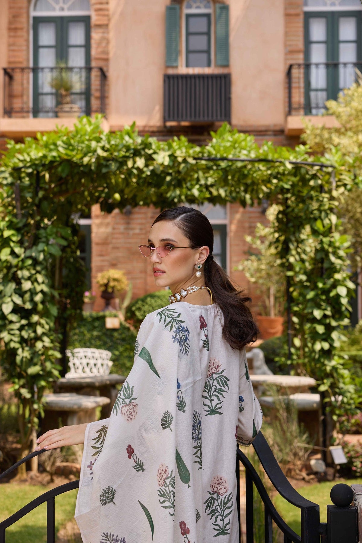 Look and feel great in this stylish set by Neerus. The beautiful cream printed kurta, trousers, and dupatta will elevate your wardrobe and bring out your inner confidence.