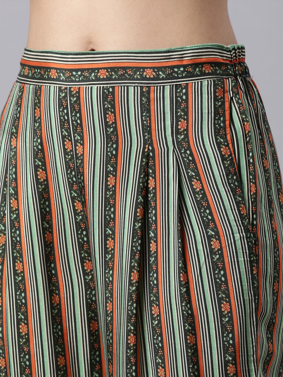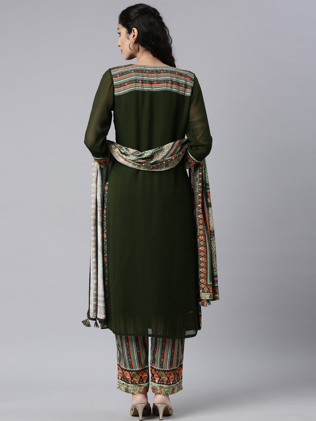 Neerus Green Panelled Straight Kurta and Trousers With Dupatta