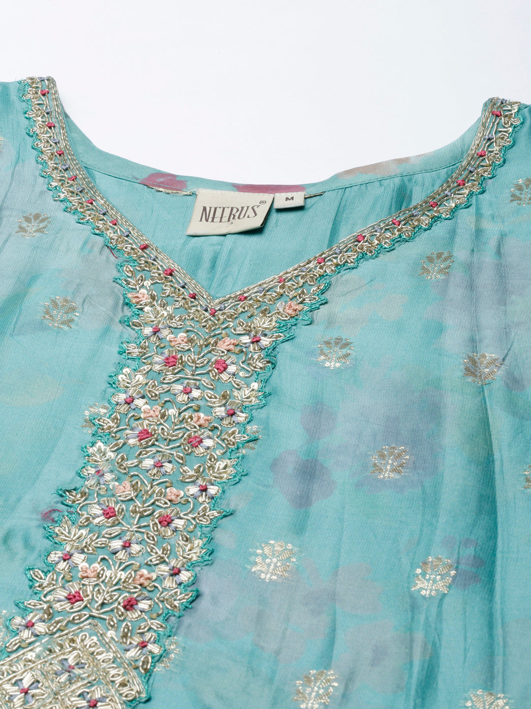 Neerus Green Panelled Straight Kurta and Trousers With Dupatta Stay comfortable while making a statement. The intricate design and flowy silhouette is perfect for any body type, making you feel stylish and confident.
