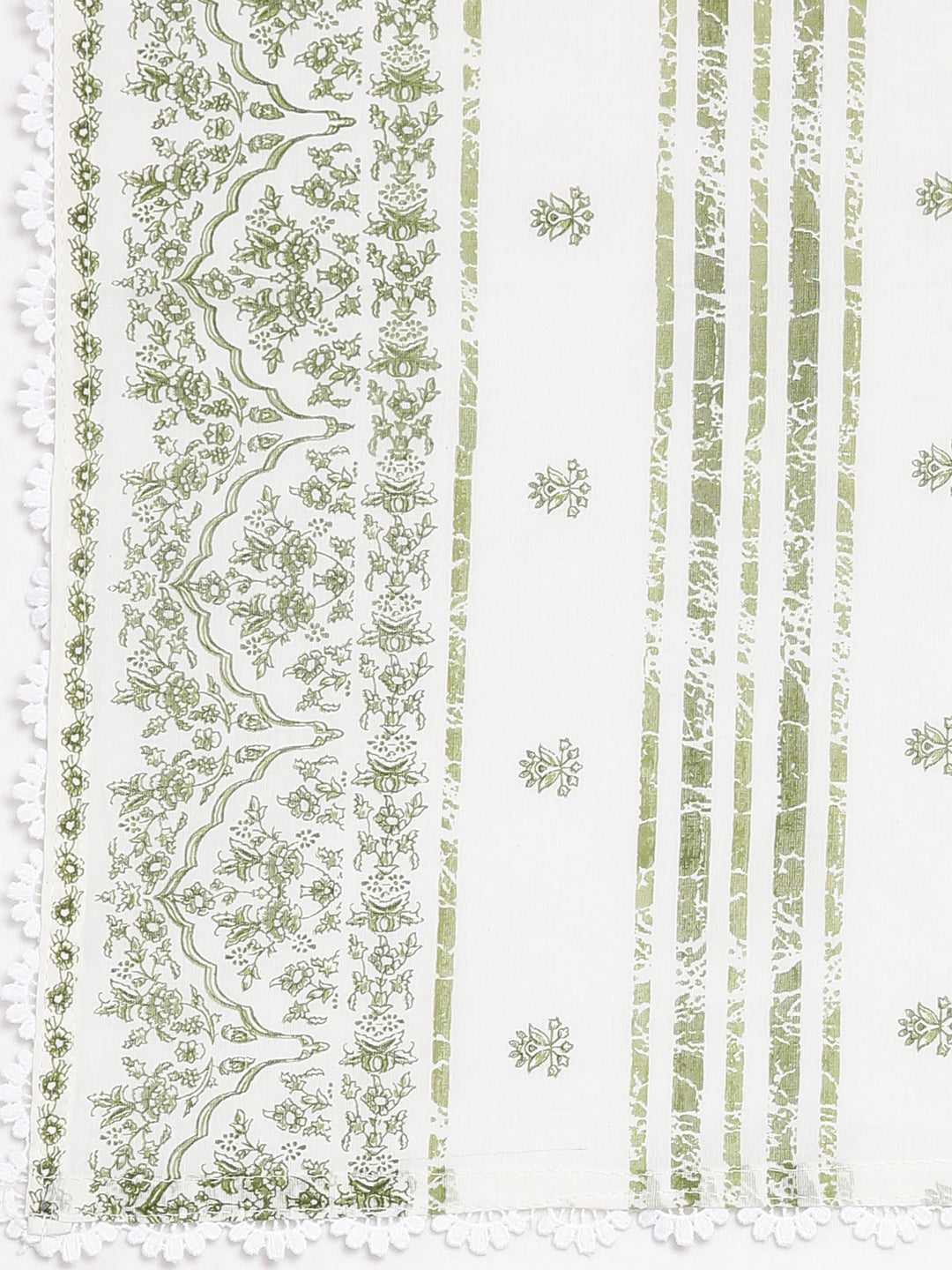 Neerus Green Pleated Curved Printed Kurta and Trousers With Dupatta