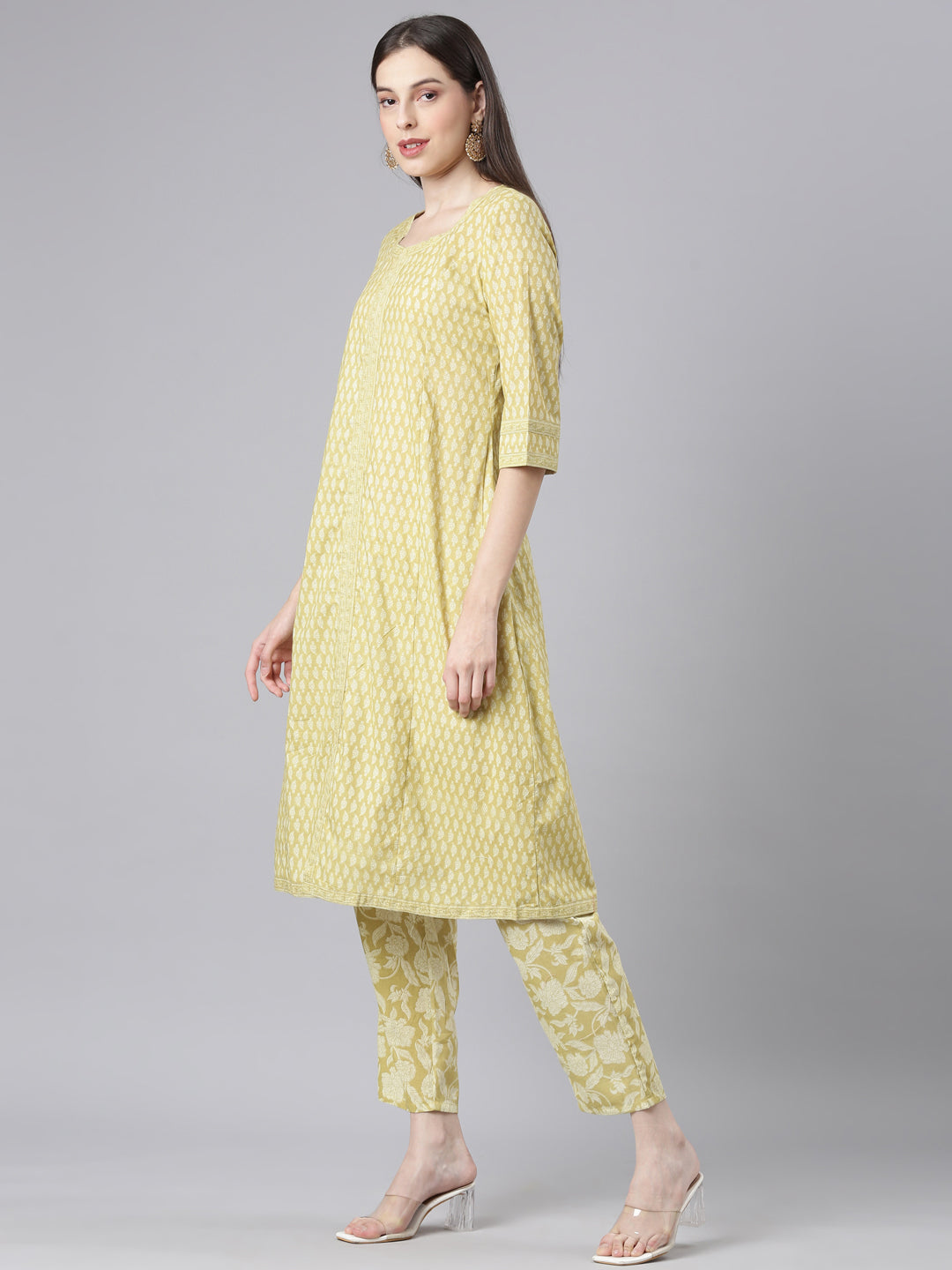 Neerus Green Printed  Kurta and Trousers With Dupatta
