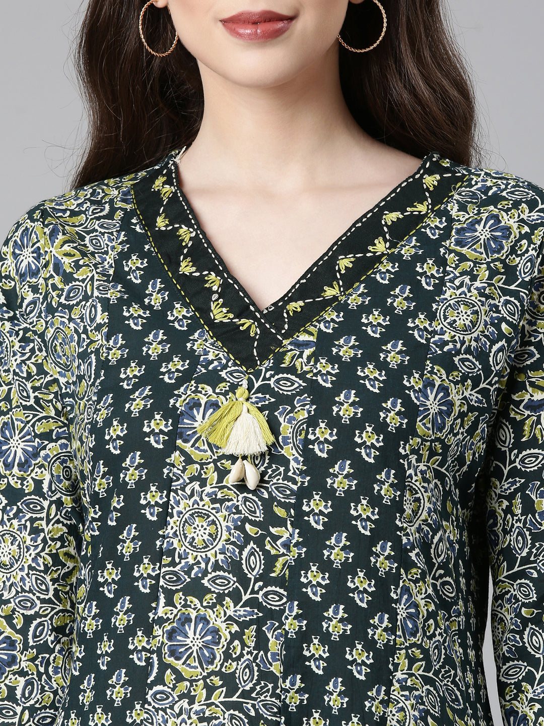Elevate your ethnic wardrobe with the Neerus Green Printed Straight Kurta and Trousers set, complemented by a matching dupatta. Crafted for a refined silhouette, the straight kurta features intricate green prints that blend tradition with contemporary style.
