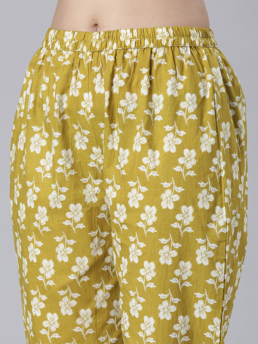 Neerus Green Printed Straight Kurta and Trousers With Dupatta
