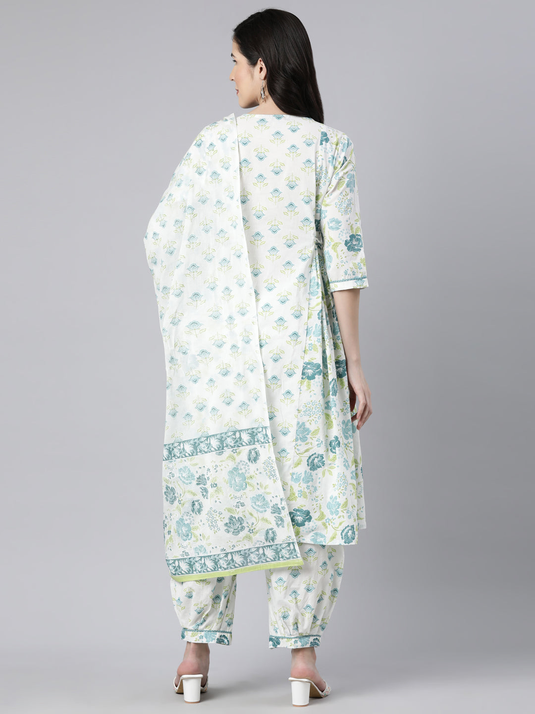 Neerus Green Regular Straight Floral Kurta And Salwar With Dupatta Effortless style and comfort come together in this stunning floral kurta, salwar, and dupatta set.