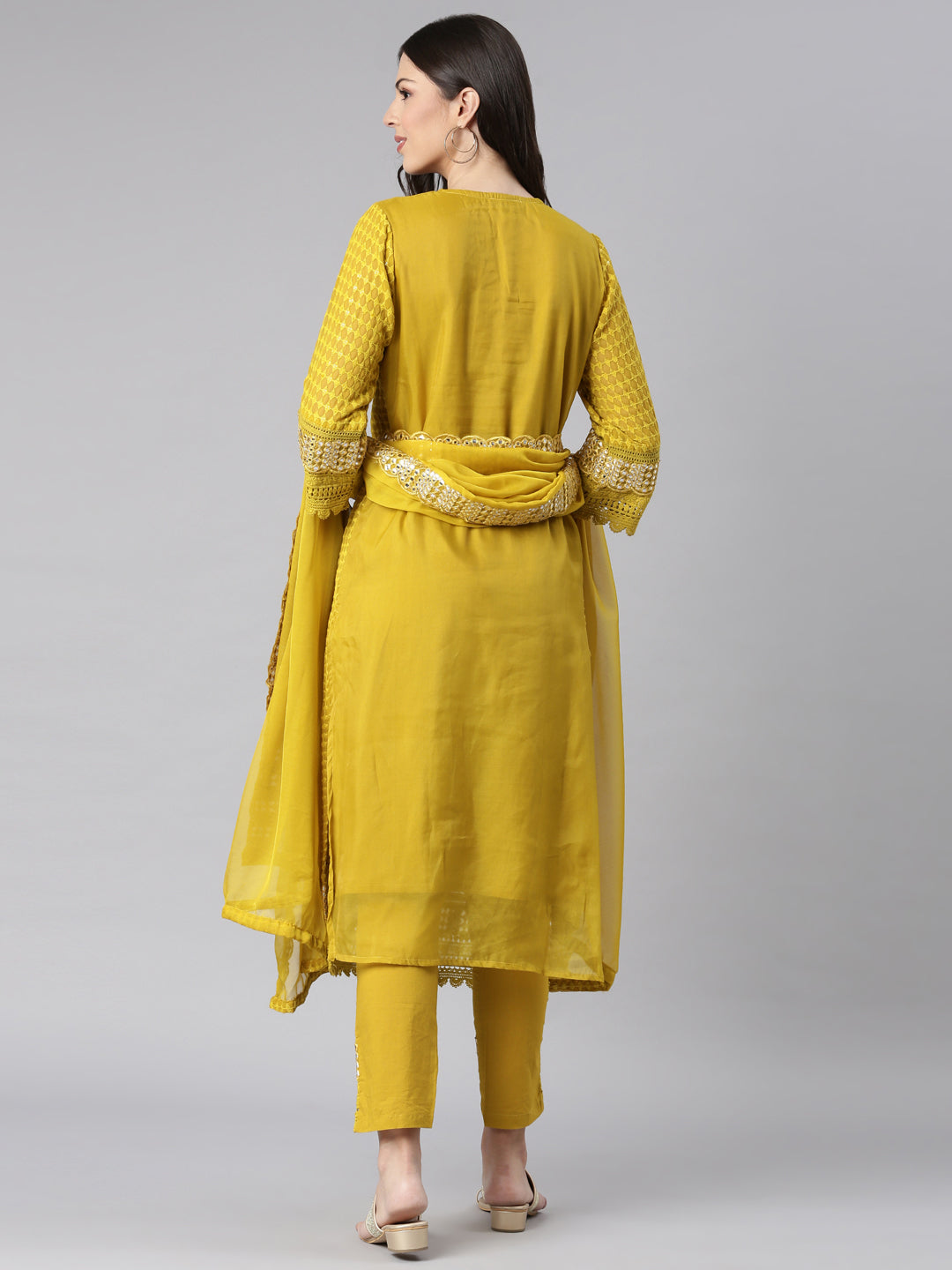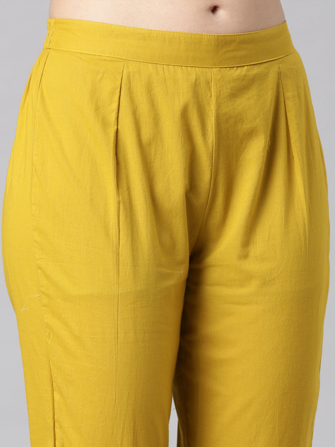 Neerus Green Solid Straight Kurta and Trousers With Dupatta