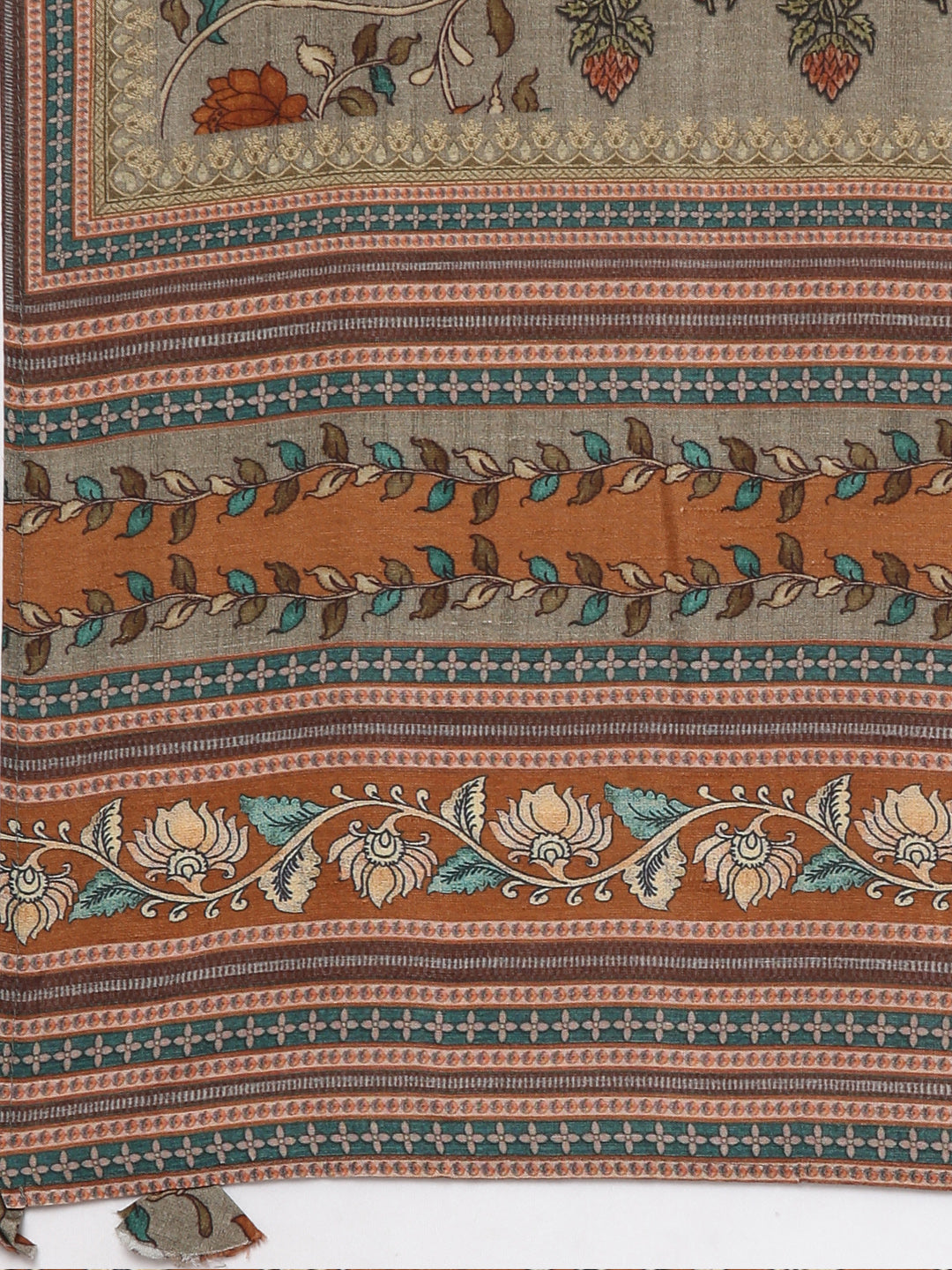Neerus Grey Panelled Straight Kurta and Trousers With Dupatta Elevate your casual wardrobe with this comfortable yet chic ensemble.