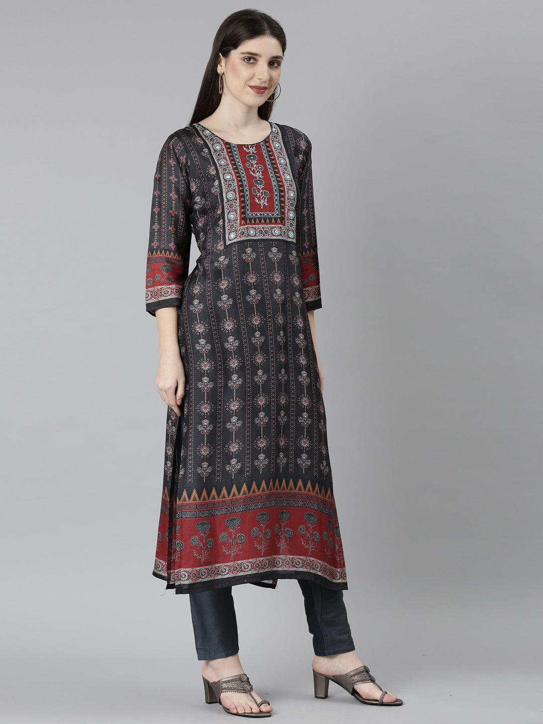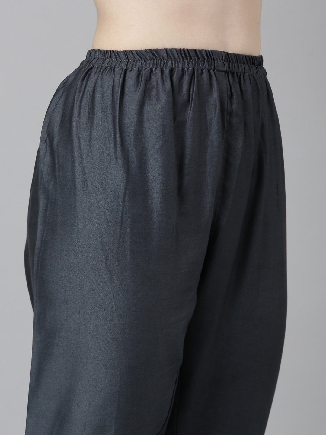 Neerus' Grey Floral Kurta And Trousers With Dupatta - A Luxurious Set.