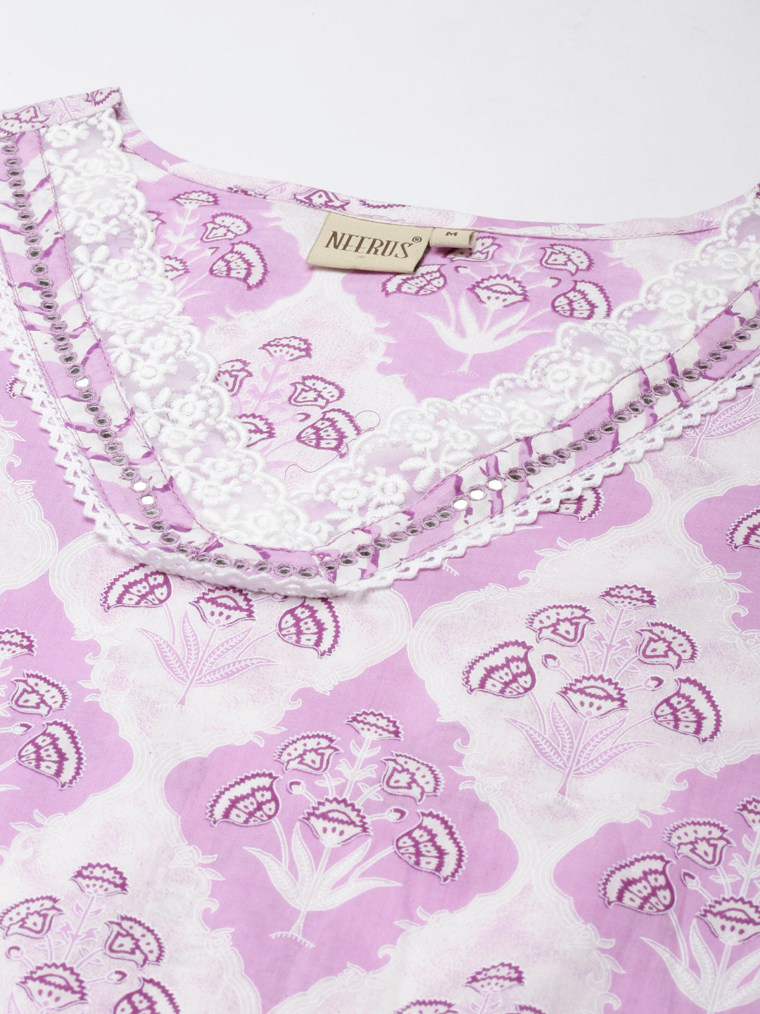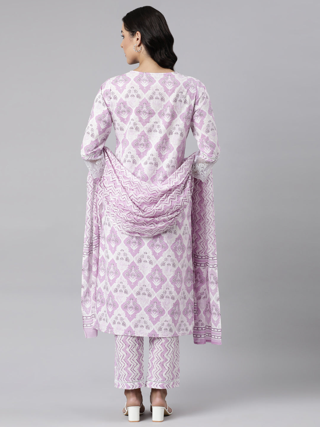 Effortlessly stylish, the Neerus Lavender Panelled Straight Printed Kurta And Trousers With Dupatta is perfect for both casual and formal occasions. Its unique print and comfortable fit make it a must-have in your wardrobe.