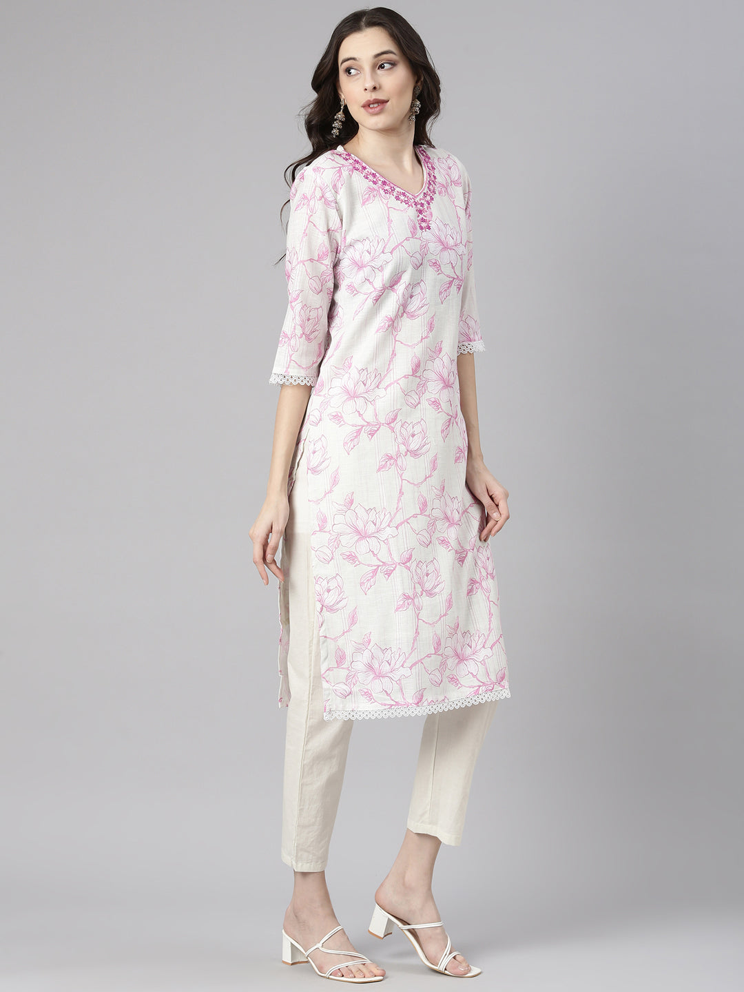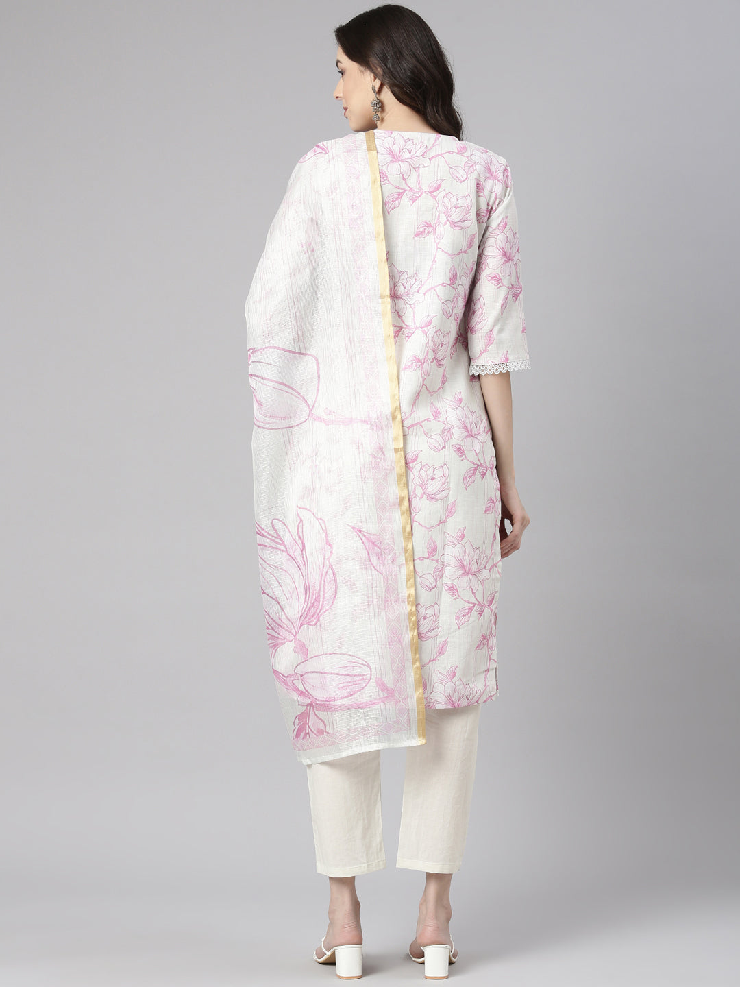 Neerus Lavender Printed Straight Kurta and Trousers With Dupatta