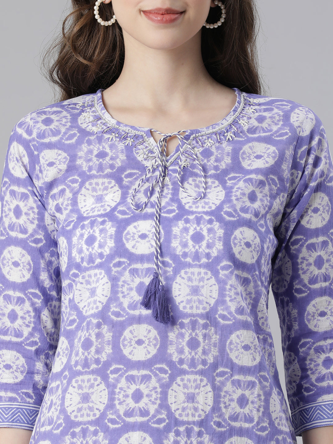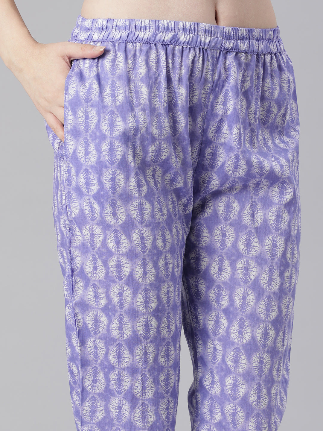 Neerus Lavender Printed Straight Kurta and Trousers With Dupatta