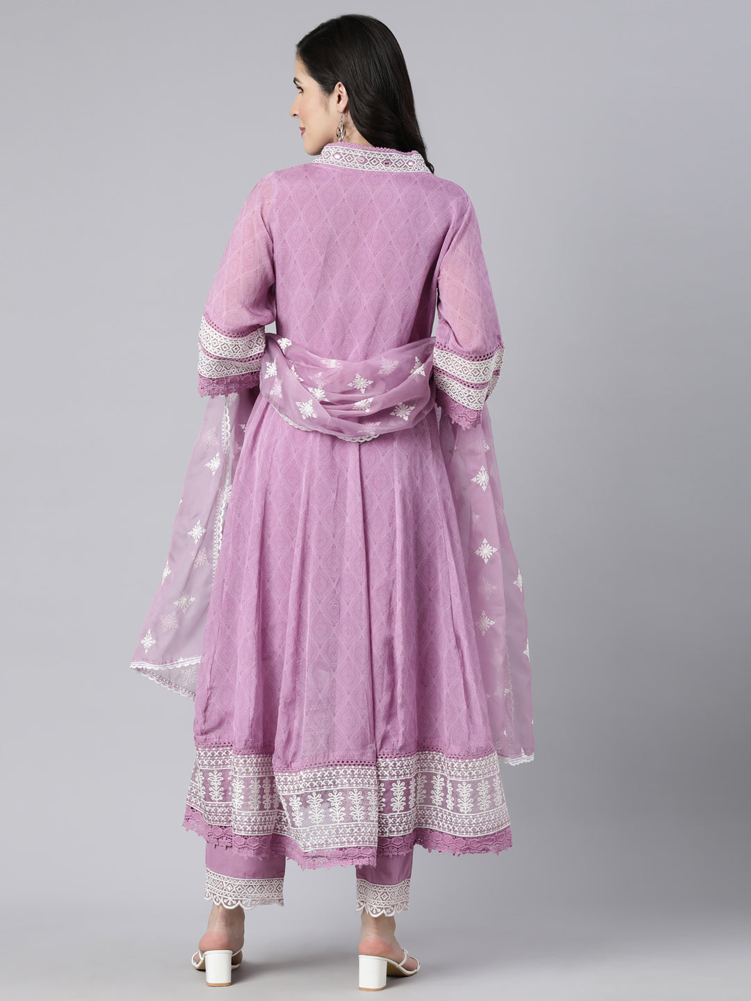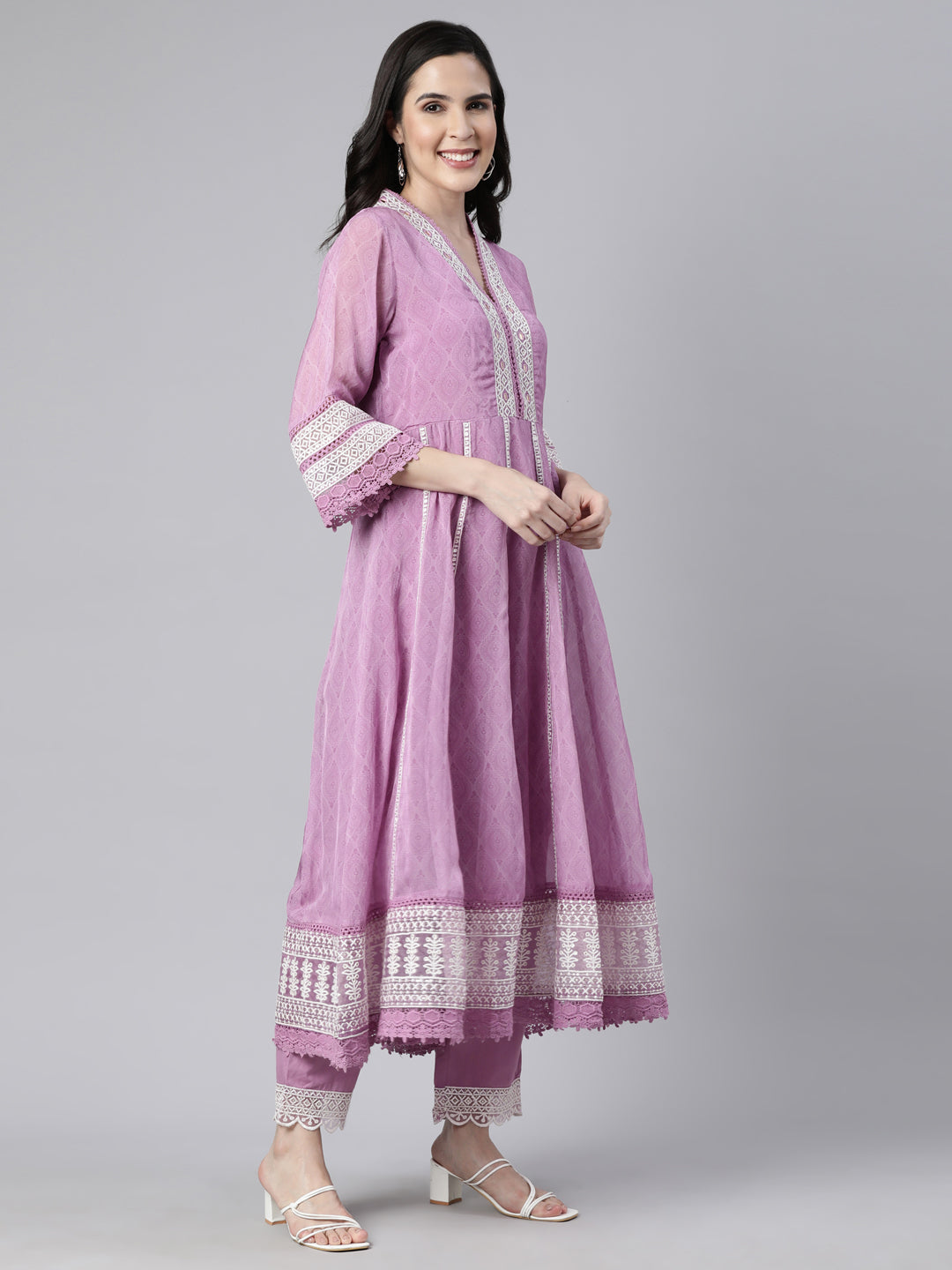 Neerus Lavender Floral Kurta & Trousers set with Dupatta - a luxurious and elegant addition to your wardrobe.