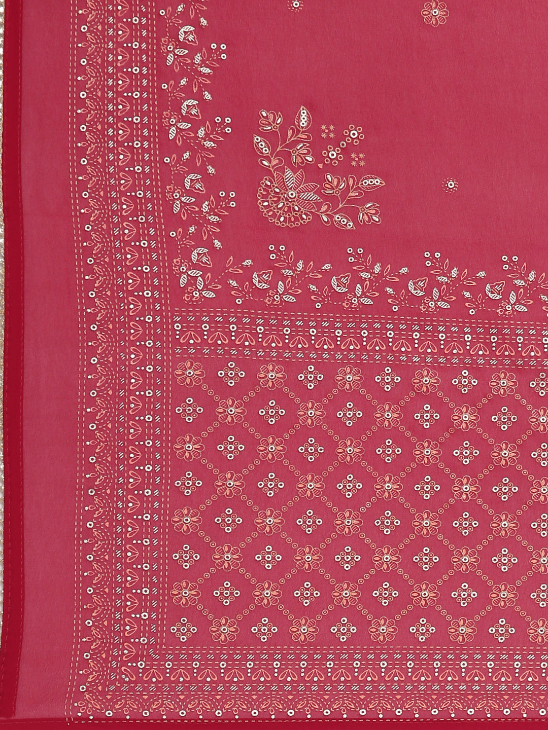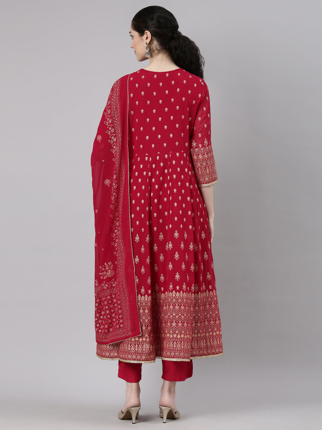 Neerus Magenta Straight Casual Floral Kurta and Trouser with Dupatta
