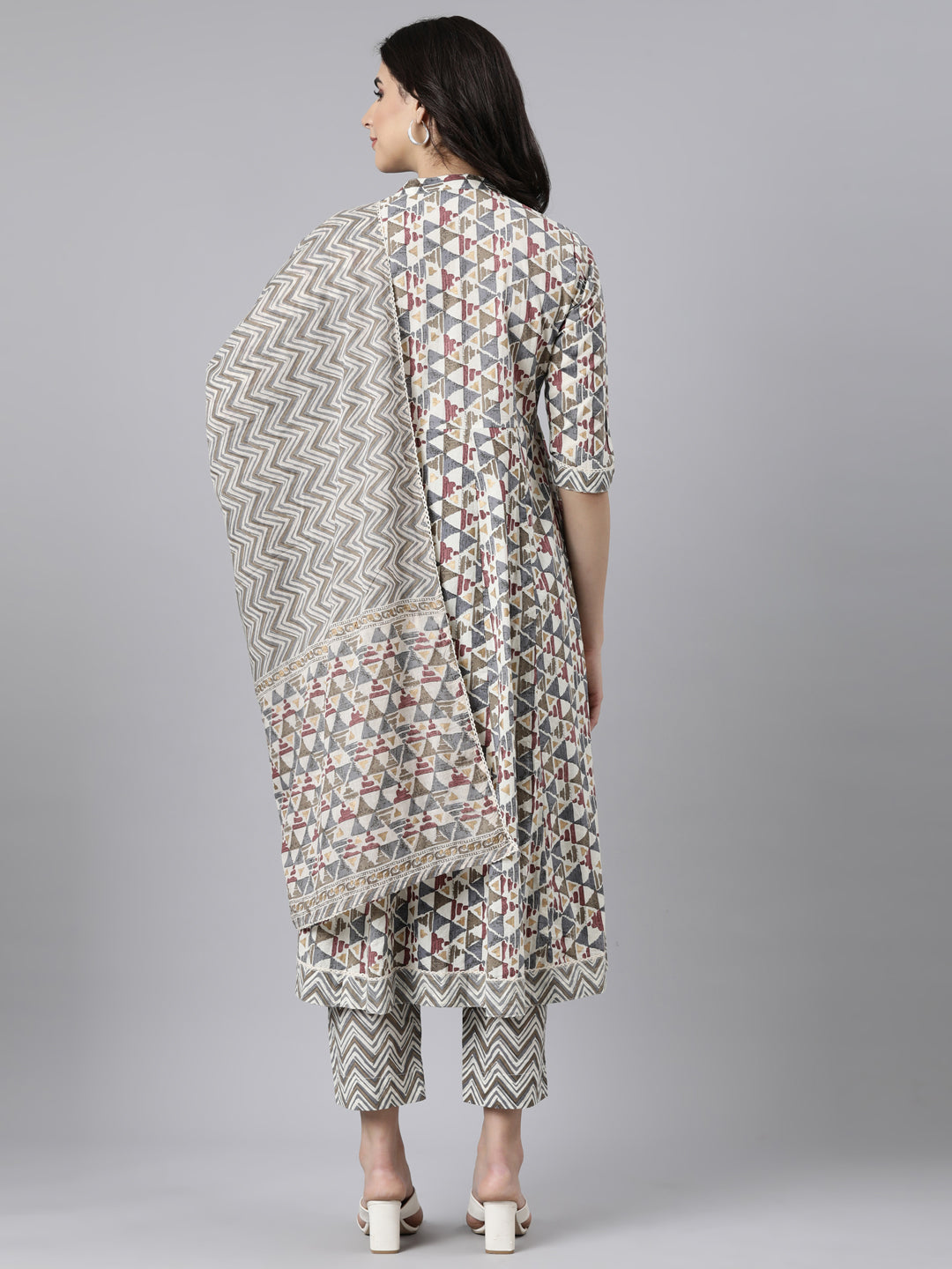 Neerus Multi Angrakha Straight Geometric Kurta And Trousers With Dupatta Turn heads with this stunning kurta and trousers set, complete with a beautiful dupatta! You'll be the talk of the town in this luxurious and fashionable ensemble - the perfect way to spice up your wardrobe!