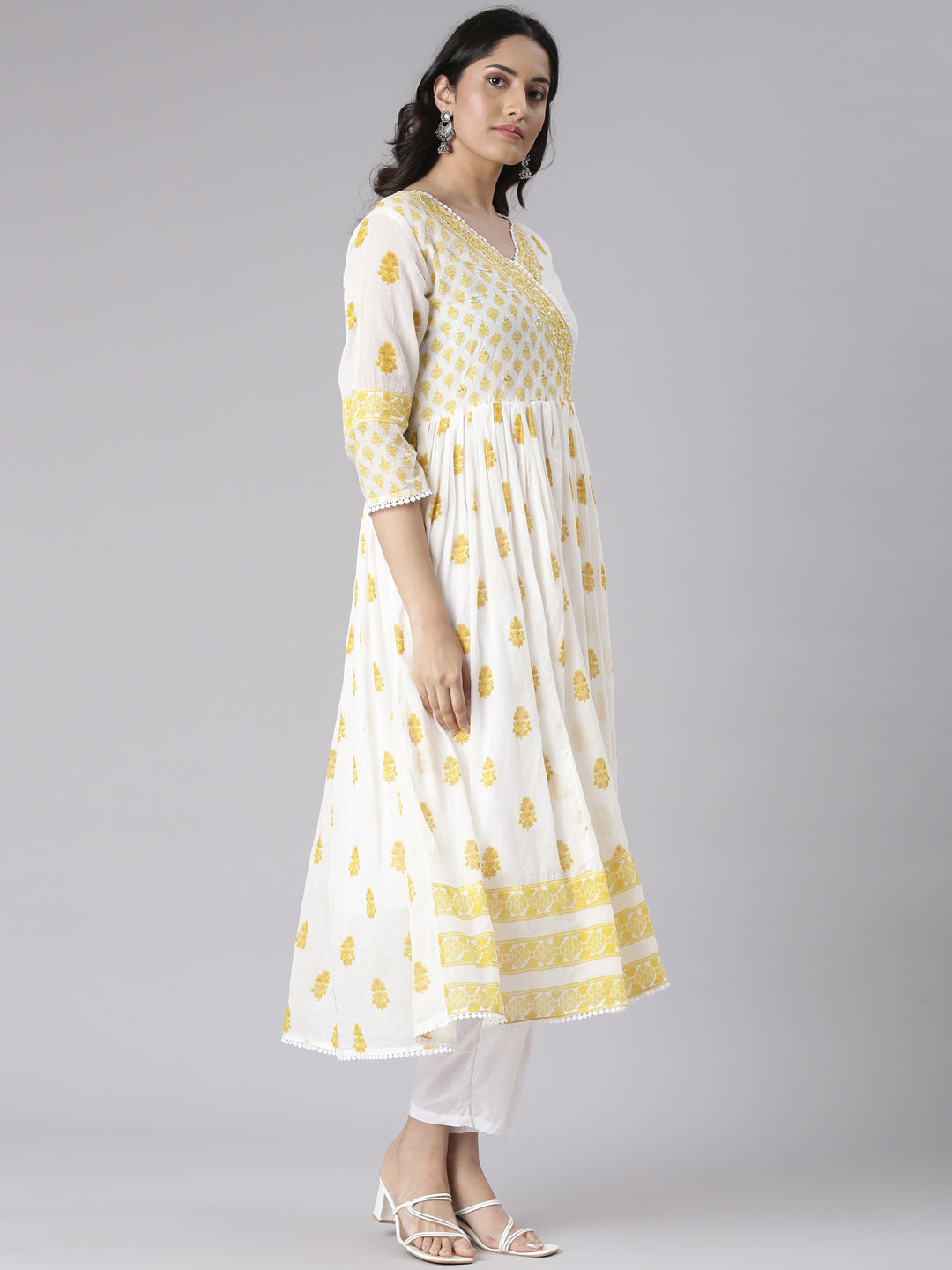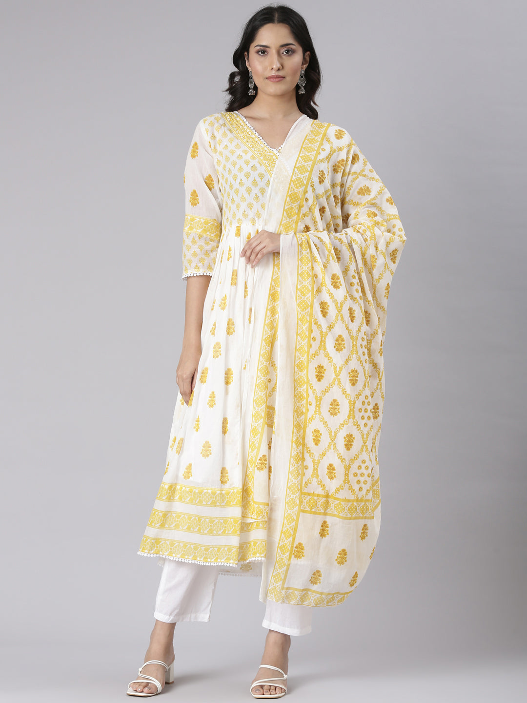 The Neerus Mustard Printed Straight Kurta and Trousers set, paired with a coordinating dupatta, offers a refined blend of traditional design and modern elegance. The rich mustard tone and intricate prints emphasize sophistication, while the tailored straight fit ensures comfort and a flattering silhouette. Perfect for special occasions, this ensemble exudes understated grace and timeless style.