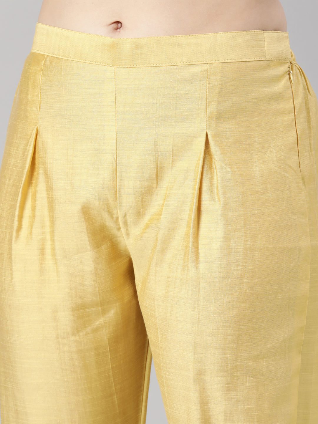 Neerus Mustard Regular Straight Floral Kurta And  Trousers With Dupatta