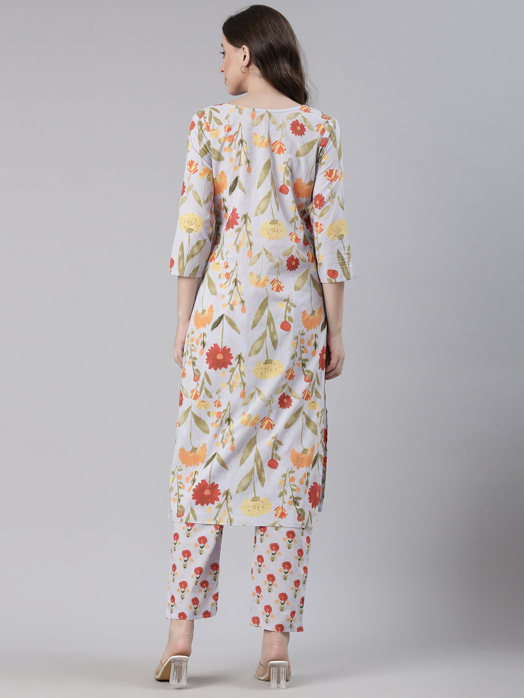 The Neerus Off White Printed Straight Kurta and Trousers combine classic style with modern refinement. Crafted in a soft off-white shade with delicate prints, this set features a straight silhouette that ensures a flattering and comfortable fit.