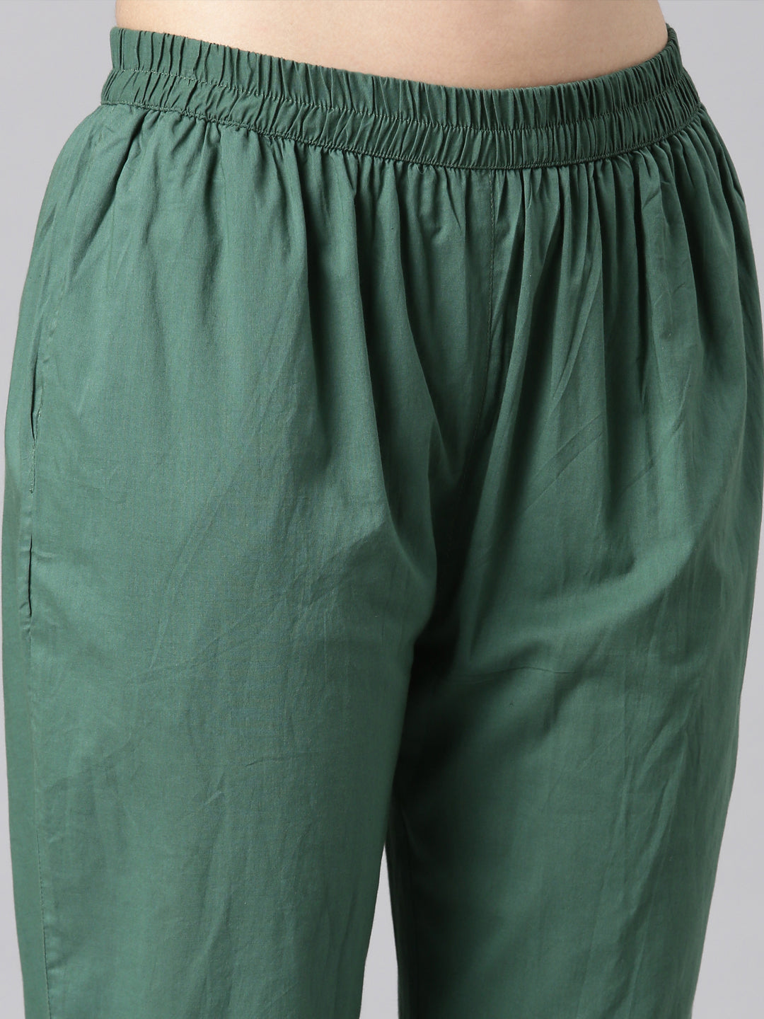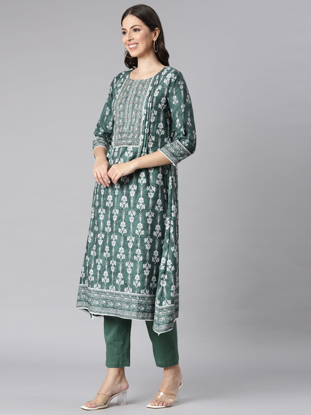 Neerus Olive Printed Kurta and Trousers With Dupatta