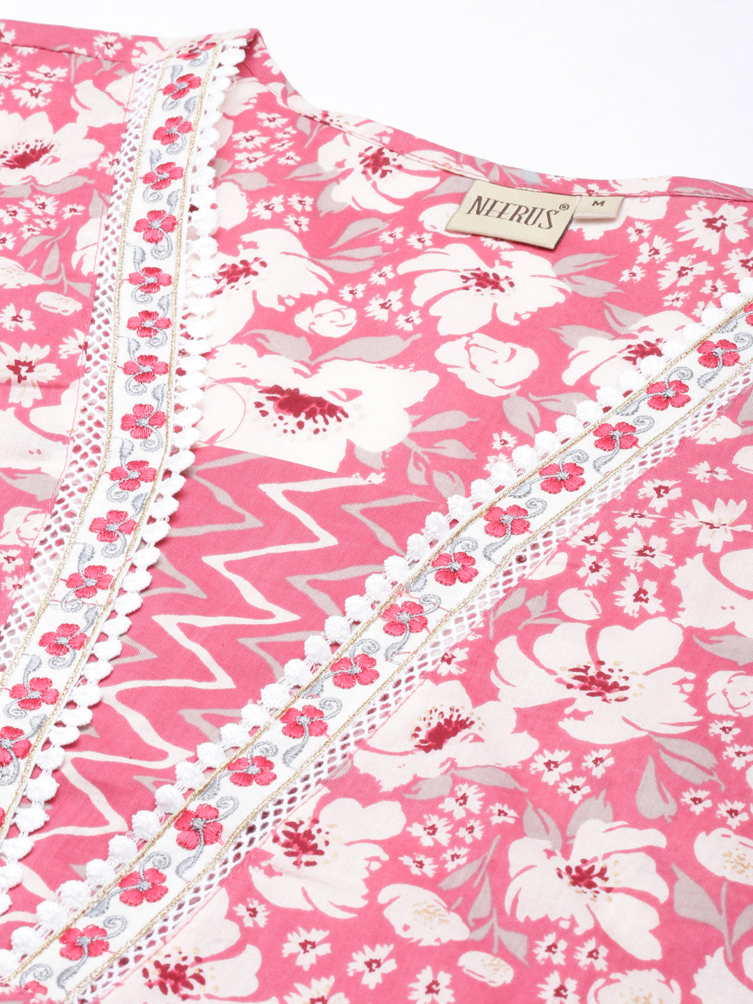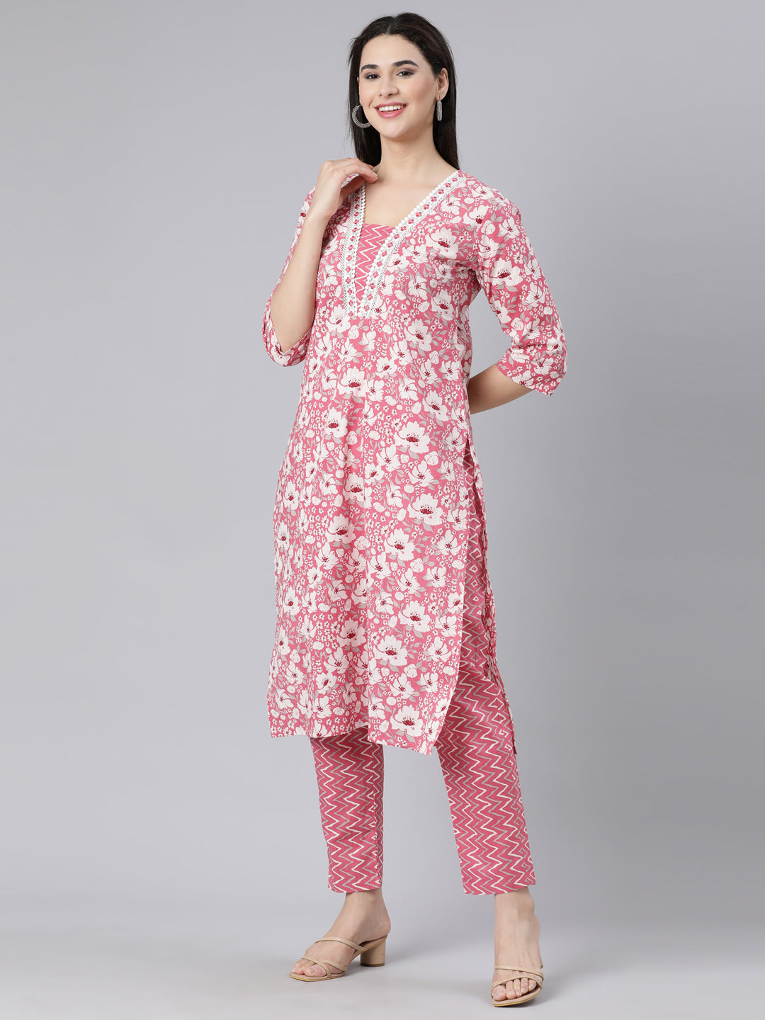Neerus Pink Panelled Straight Printed Kurta And Trousers With Dupatta Effortlessly stylish and comfortable, this outfit is perfect for any casual occasion.