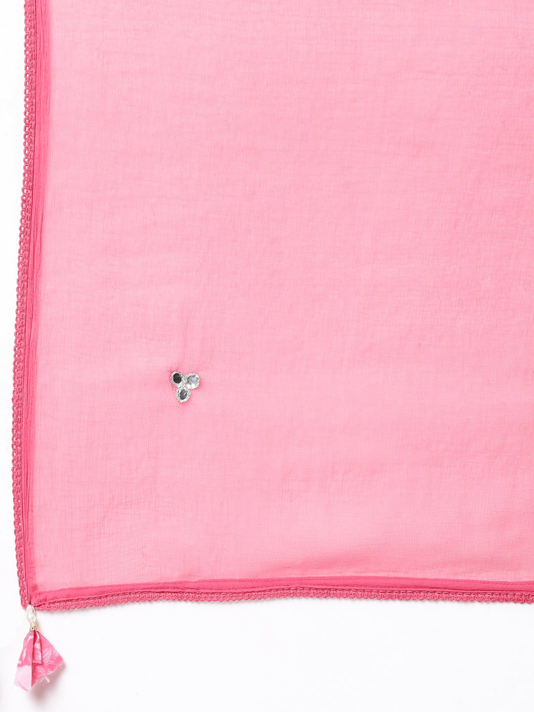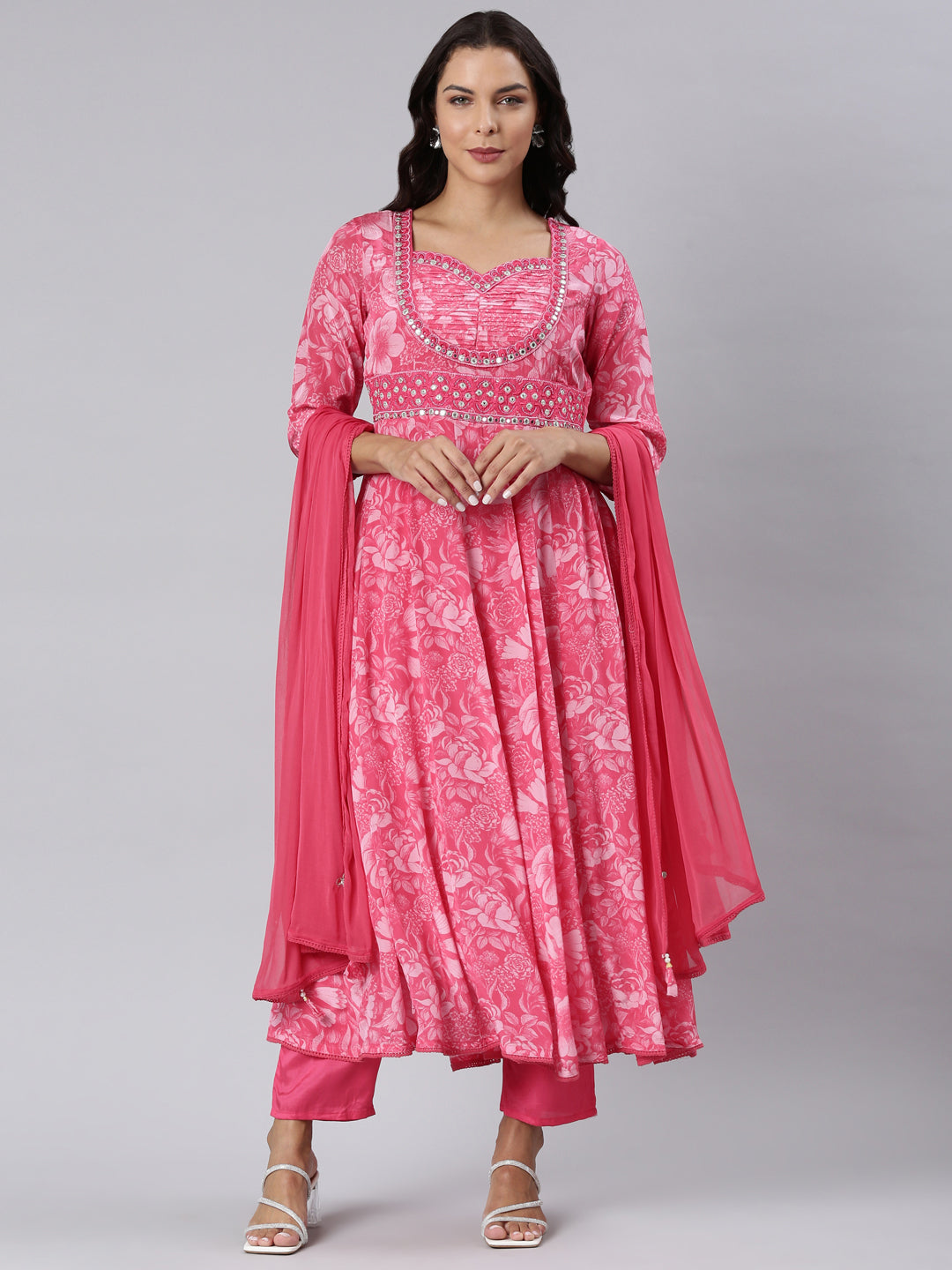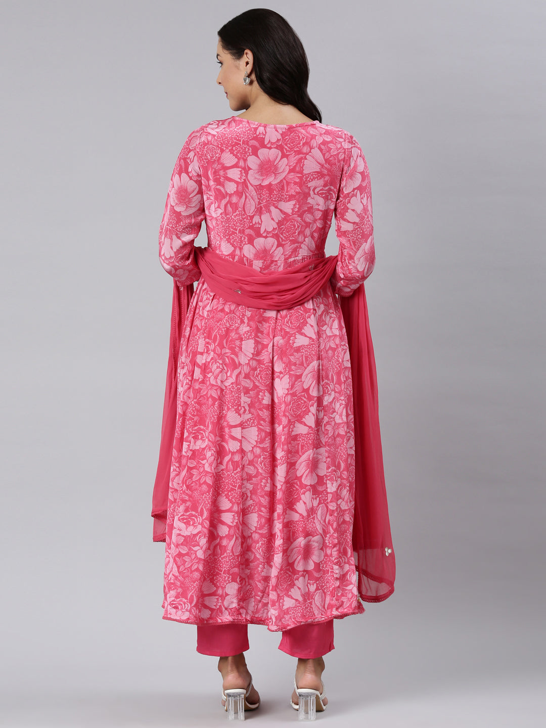 Neerus Pink Panelled Printed Kurta And Trousers With Dupatta