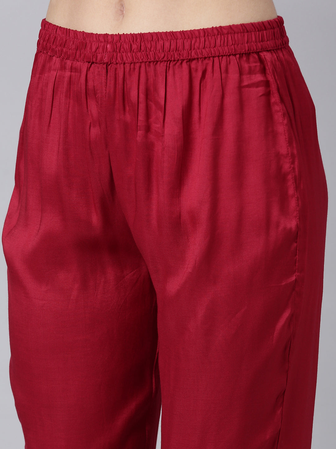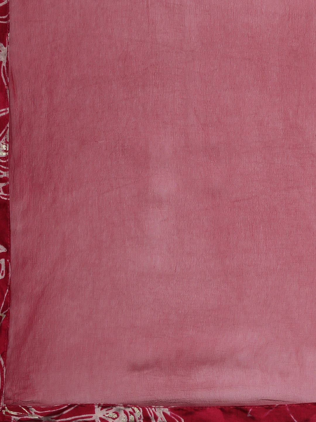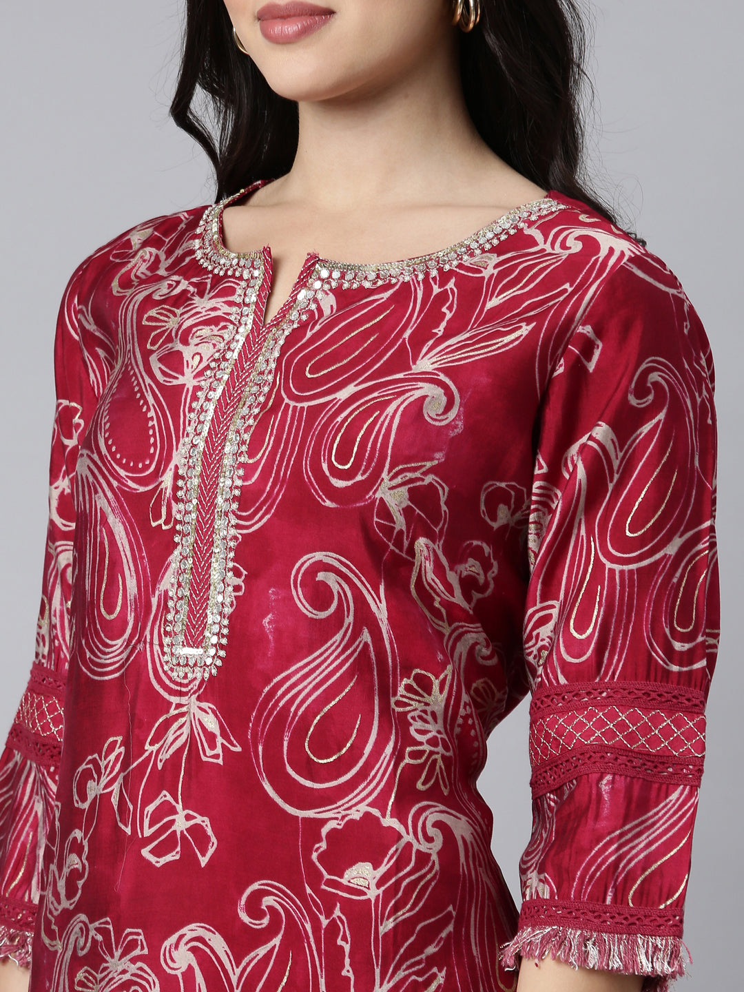 Neerus Pink Regular Straight Paisley Kurta And Trousers With Dupatta