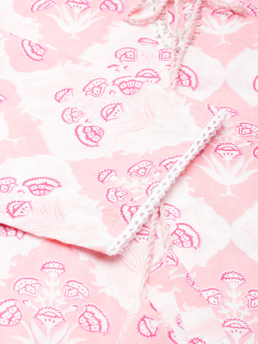Neerus Pink Regular Straight Printed Kurta and Trousers With Dupatta Comfort and style go hand in hand with this beautiful pink kurta set.
