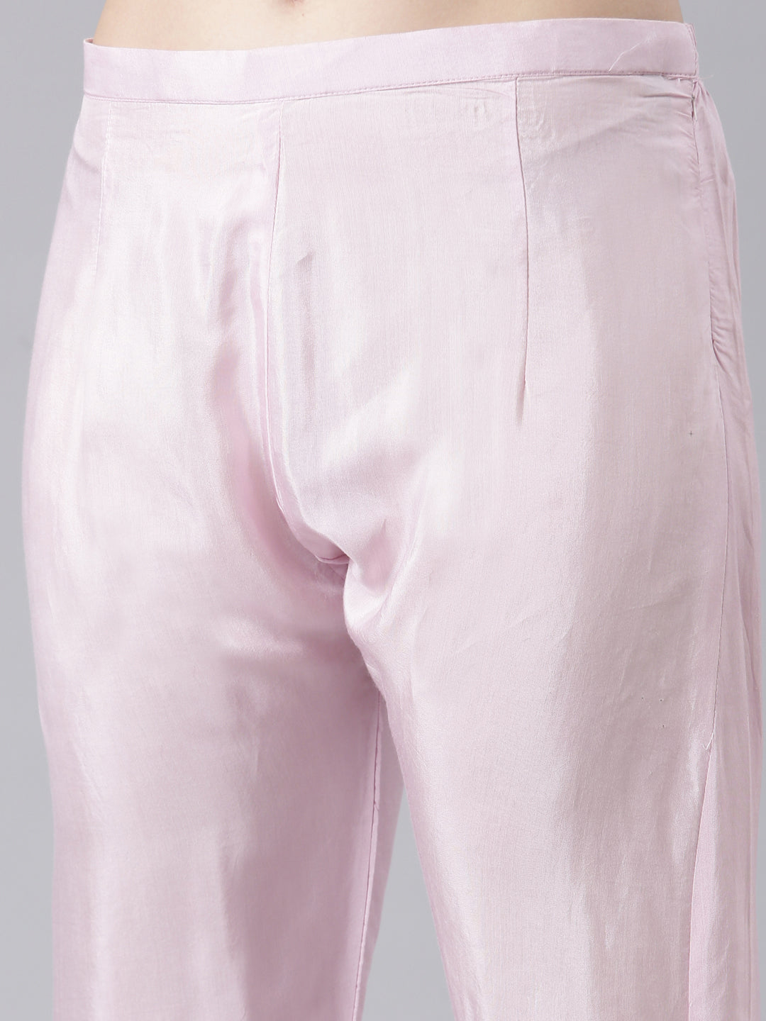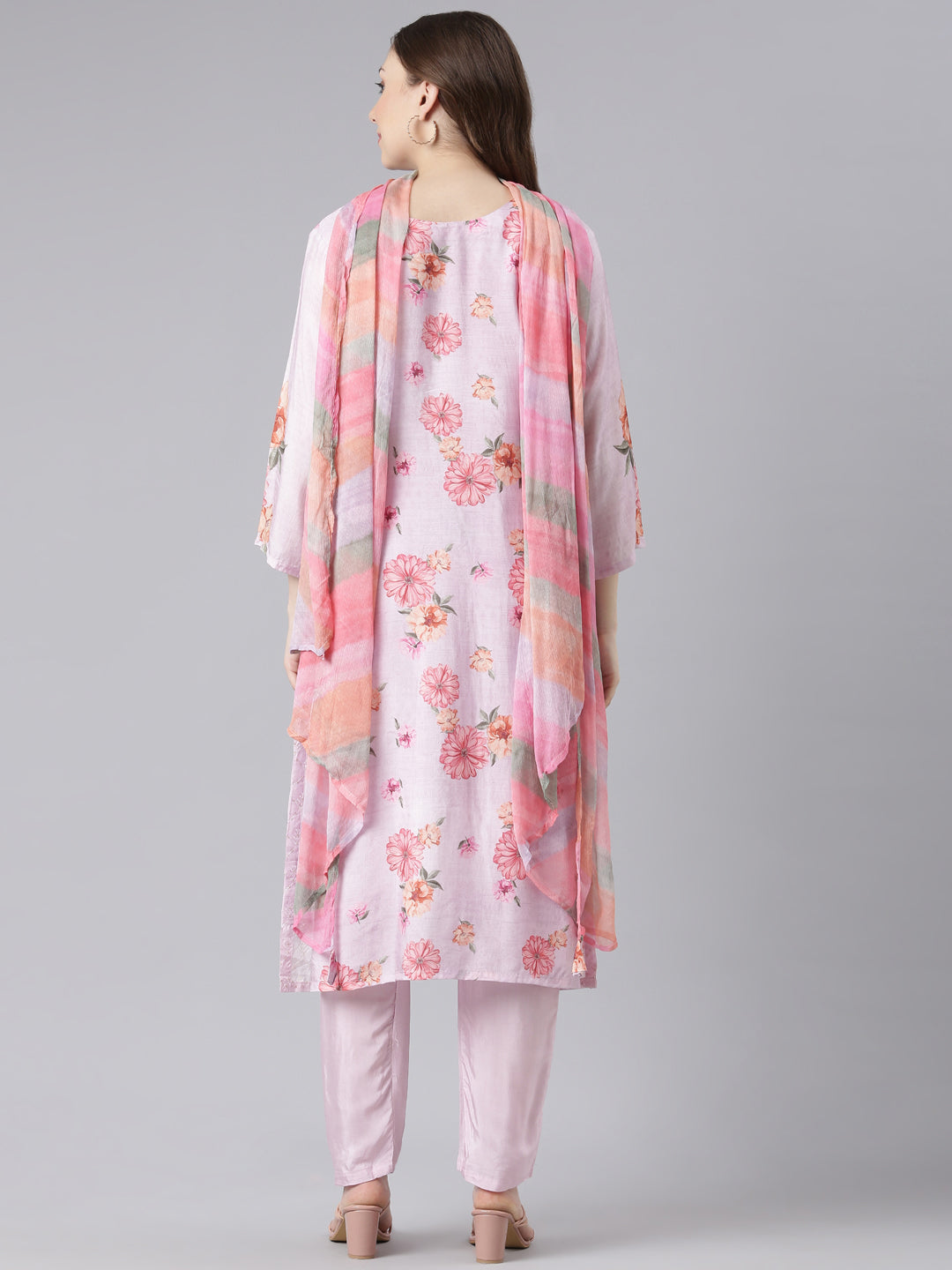 Neerus Purple Santoon Straight Casual Floral Kurta and Trouser with Dupatta