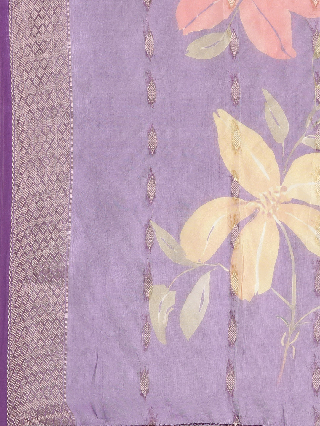 The kurta, trousers, and dupatta make a stylish trio, featuring a royal purple hue that will turn heads. It's perfect for both formal occasions and everyday wear.