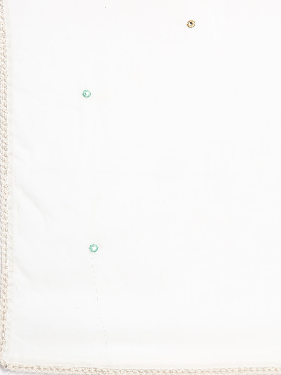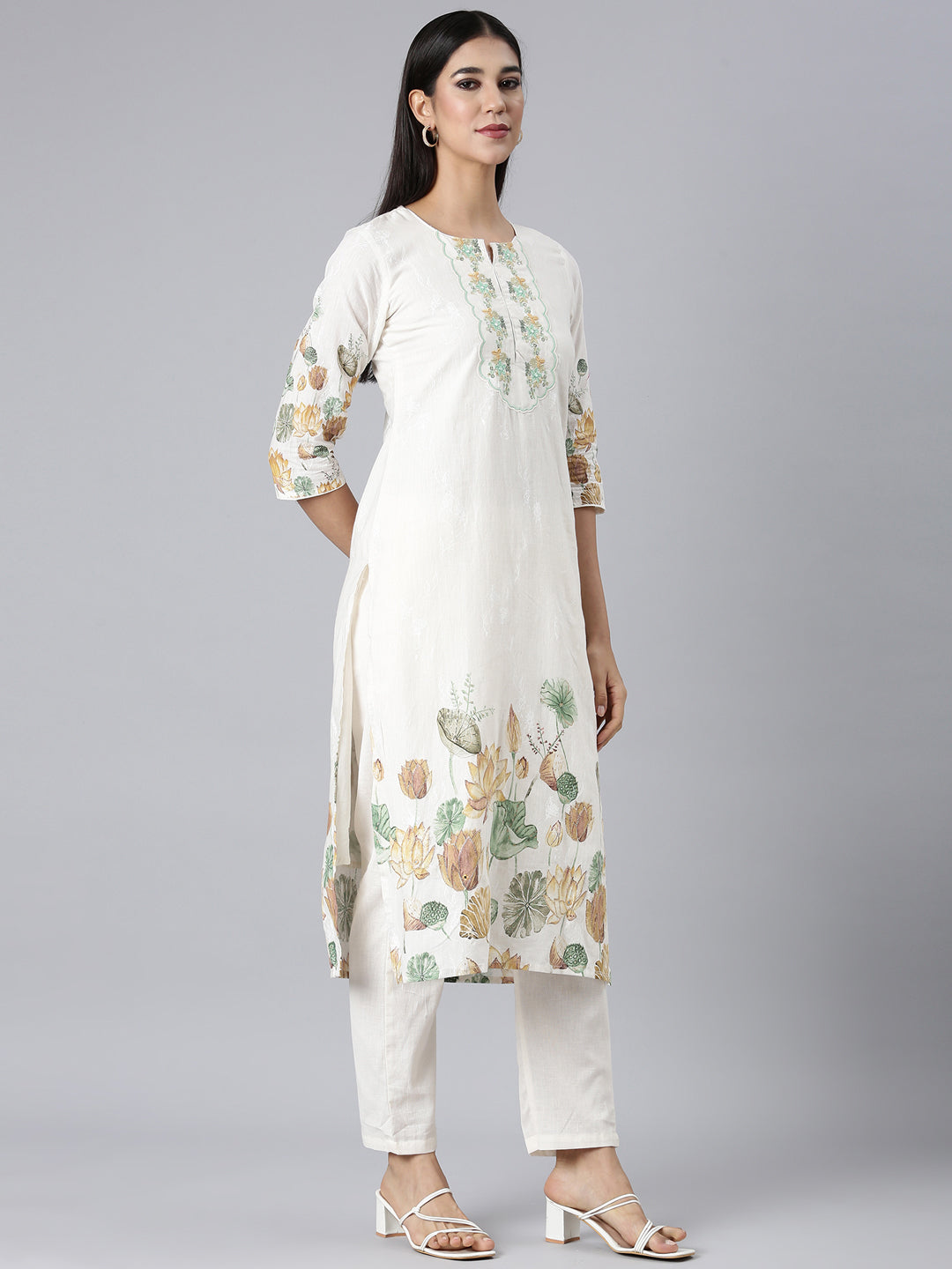 Neerus White Printed Straight Kurta and Trousers With Dupatta