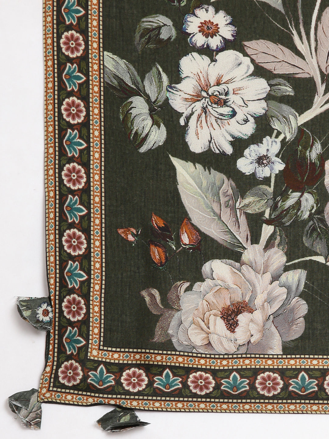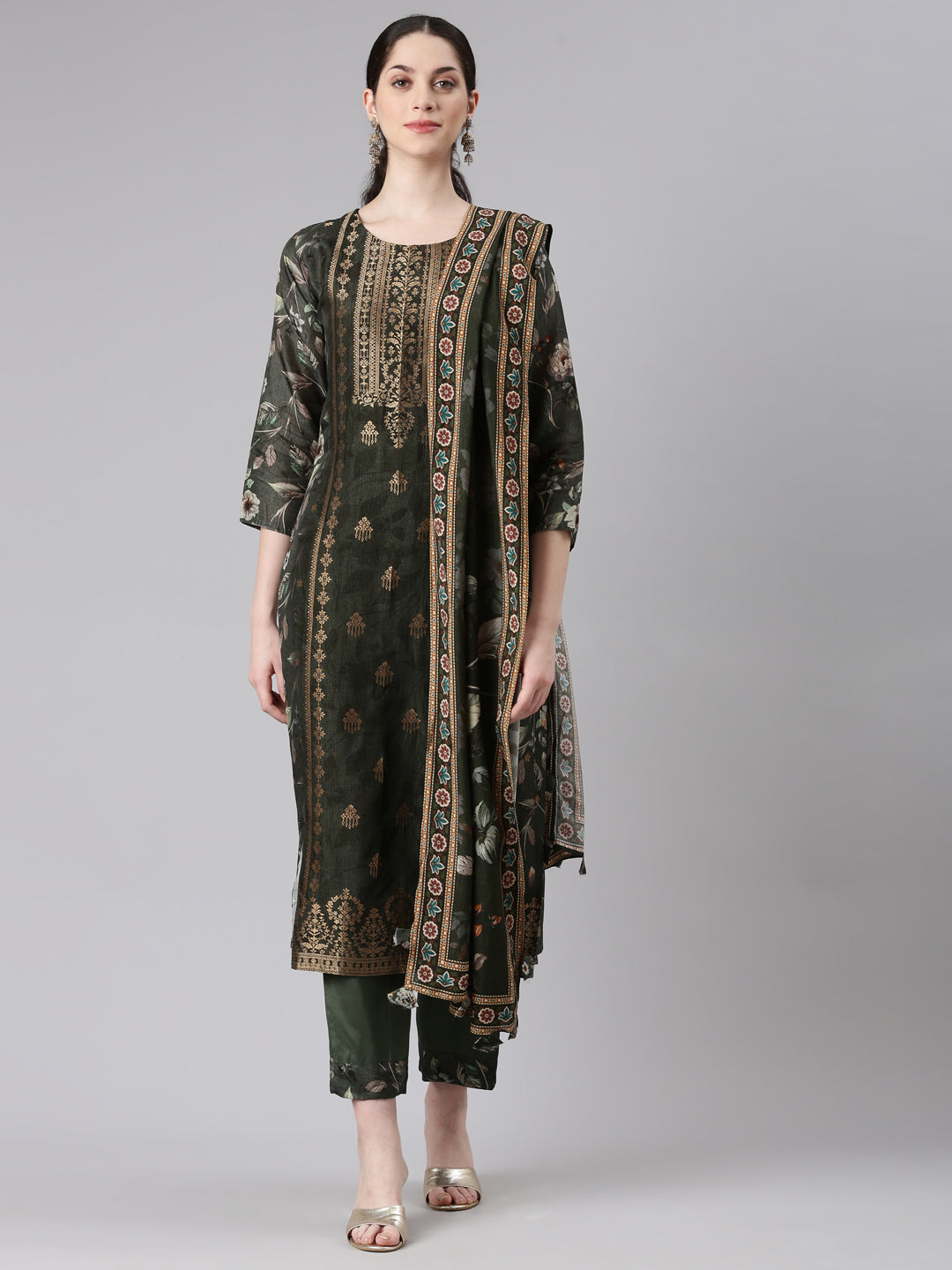 Neerus Women Green Straight Kurta and Trousers With Dupatta