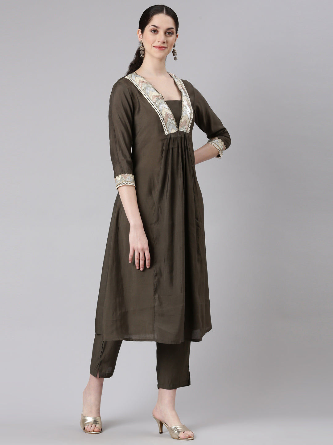 Neerus Women Grey Anarkali Kurta and Trousers Elevate your wardrobe with chic and elegant styles, perfect for any occasion.