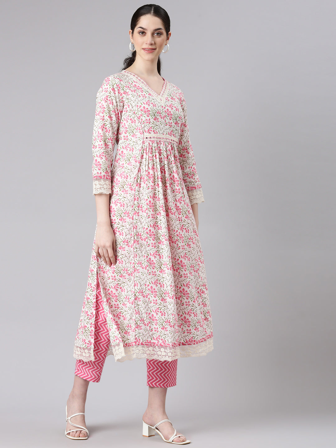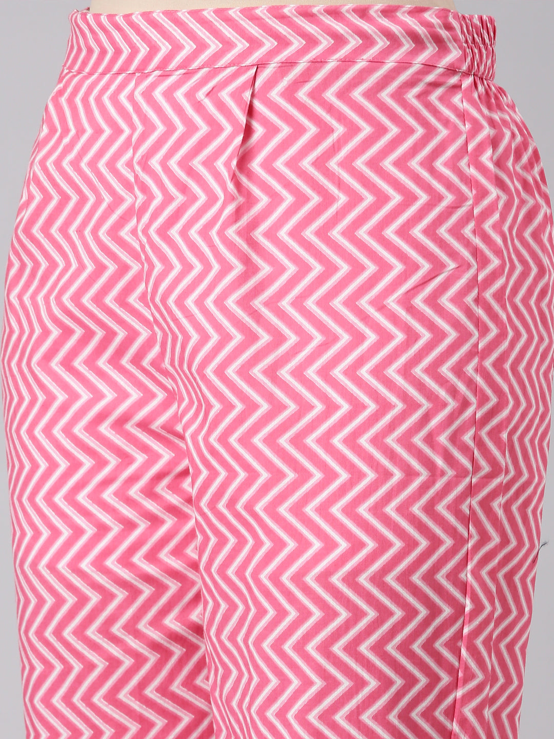 Neerus Women Pink Straight Kurta and Trousers With Dupatta