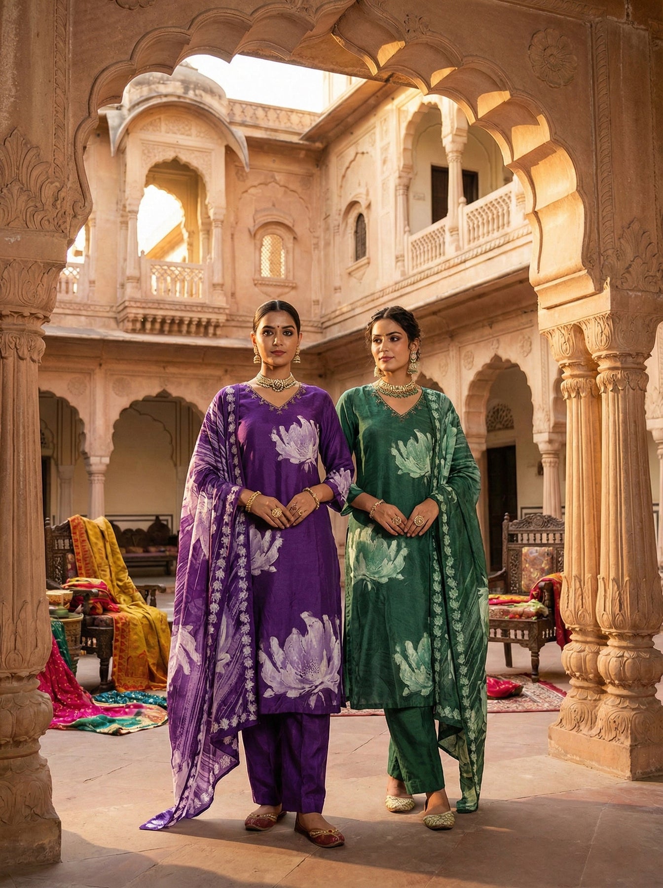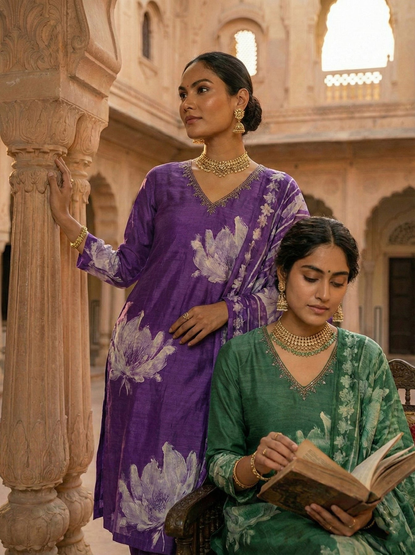 Embrace elegance with this stunning purple muslin three-piece set, featuring delicate floral prints that celebrate timeless Indian craftsmanship. Perfect for any occasion, this versatile ensemble combines comfort with sophisticated style. The breathable muslin fabric ensures all-day wearability, while the intricate floral design adds a touch of grace to your wardrobe. Ideal for celebrations, casual gatherings, or everyday wear, this set lets you express your personal style with confidence and poise.