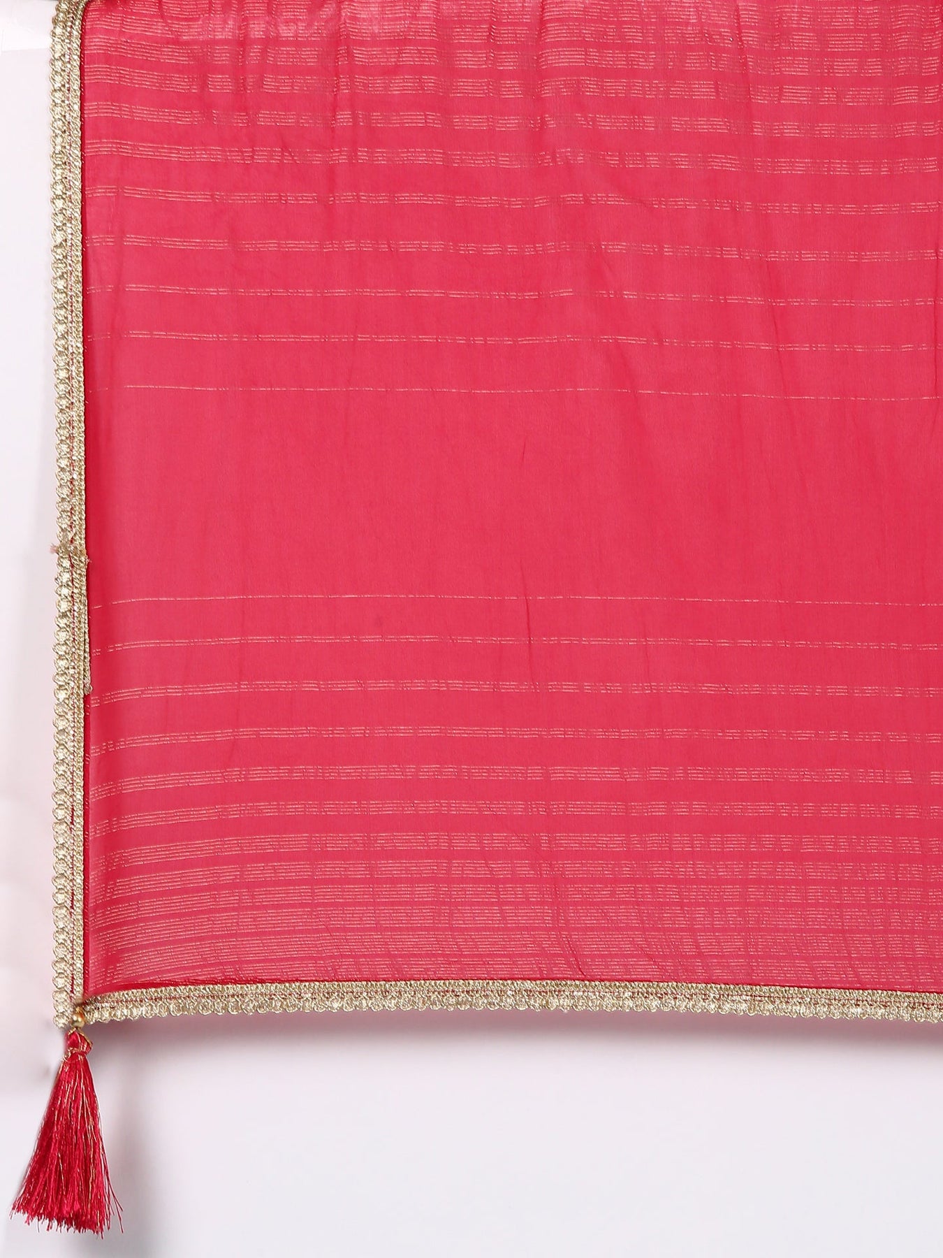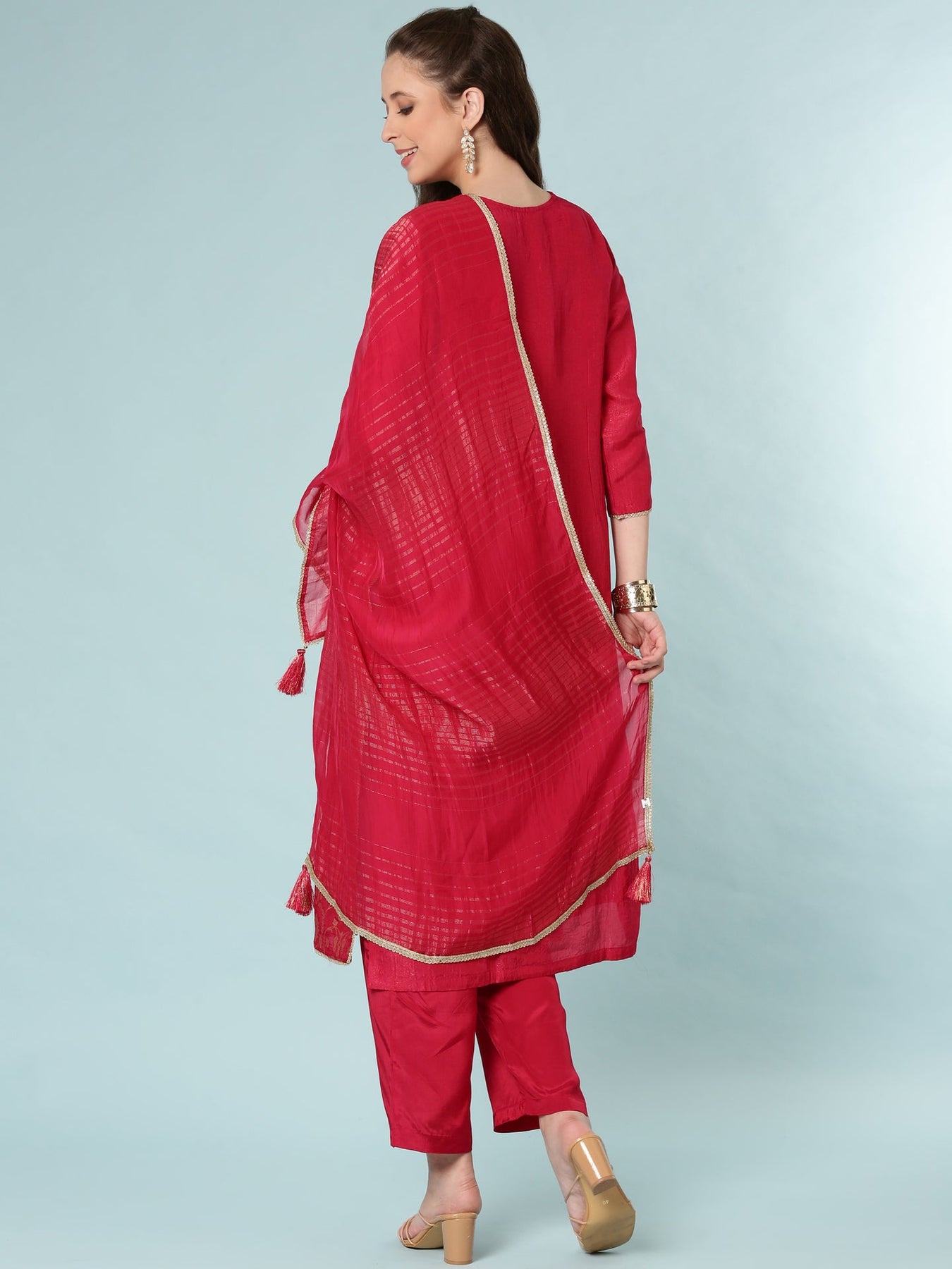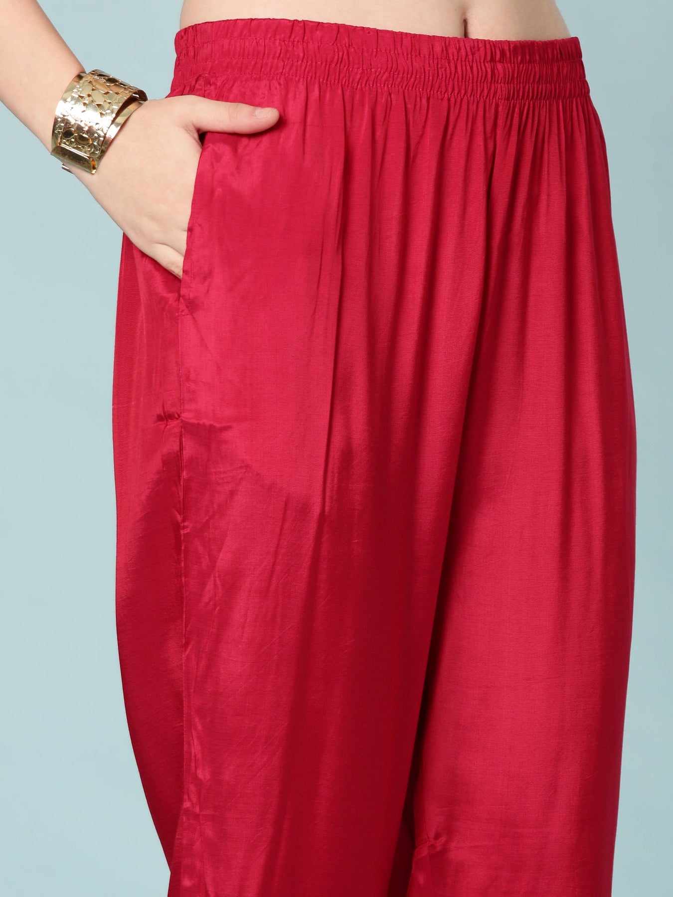 Embrace timeless elegance with this stunning Rani Pink Silk Digital Print Three Piece Set. Crafted from luxurious silk fabric, this ensemble features exquisite digital prints that showcase intricate patterns and vibrant hues. The three-piece design offers versatility for various occasions, whether you're attending a celebration or making a statement at a special event. The rich rani pink shade complements all skin tones beautifully, while the premium silk ensures a graceful drape and comfortable wear throughout the day.