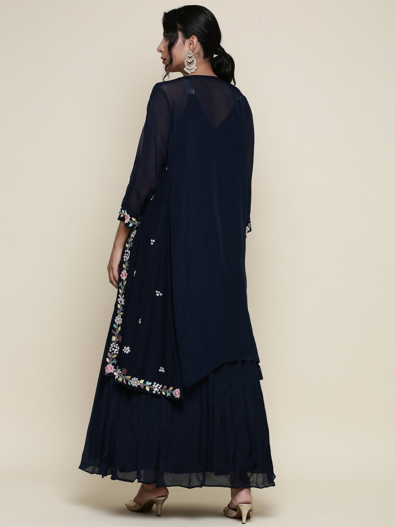 Peacock Georgette resham embroidered anarkali with jacket