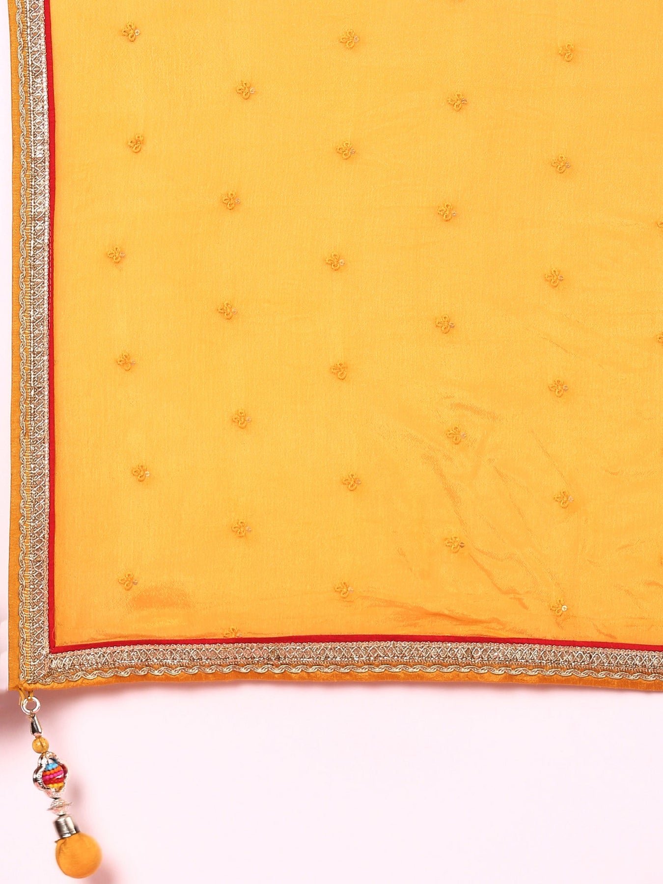 Elevate your festive wardrobe with this yellow embroidered georgette three-piece ghagra set. Crafted from lightweight, flowing georgette fabric, it features intricate embroidery that adds an elegant touch. The set includes a richly detailed skirt, a matching blouse, and a coordinating dupatta, offering a harmonious blend of traditional design and contemporary style. Perfect for special occasions, this ensemble ensures a graceful silhouette and comfortable wear throughout the day.