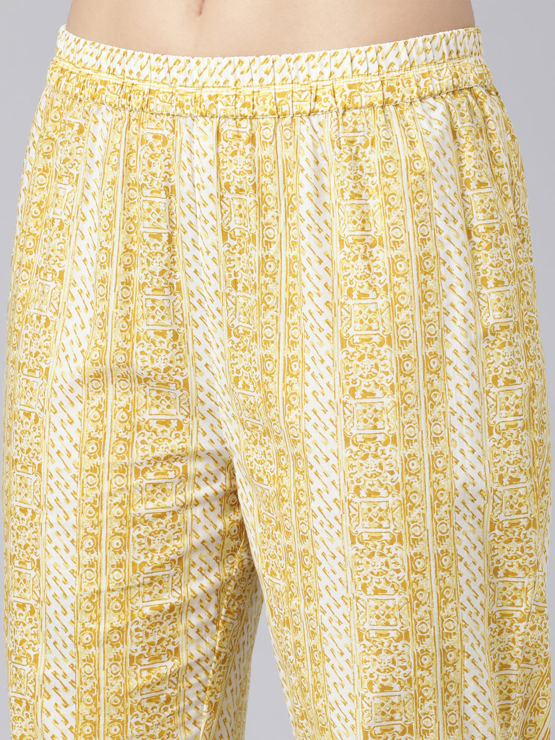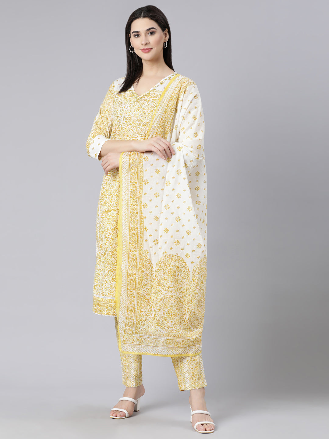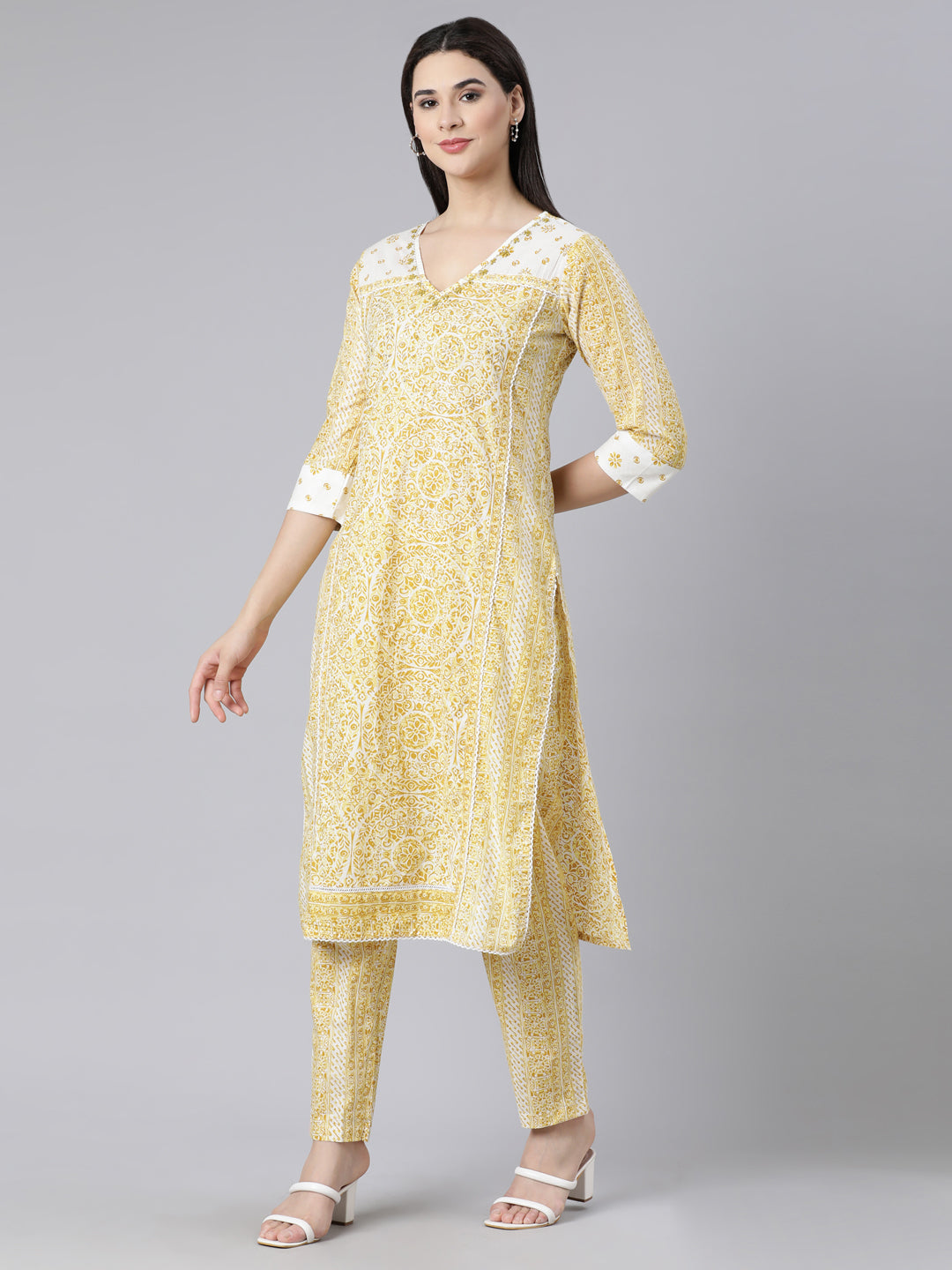 Neerus Green Panelled Straight Printed Kurta And Trousers With Dupatta Effortlessly stylish and elegant, this kurta and trousers set is perfect for any occasion.