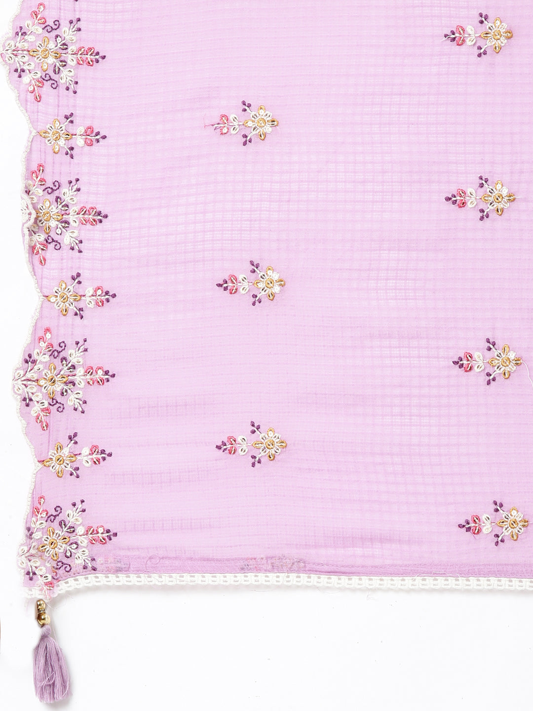 Elevate your ethnic wardrobe with the Neerus Lavender Embroidered Anarkali Kurta paired with matching trousers and a dupatta. Crafted with intricate embroidery, this ensemble blends traditional elegance with contemporary style.