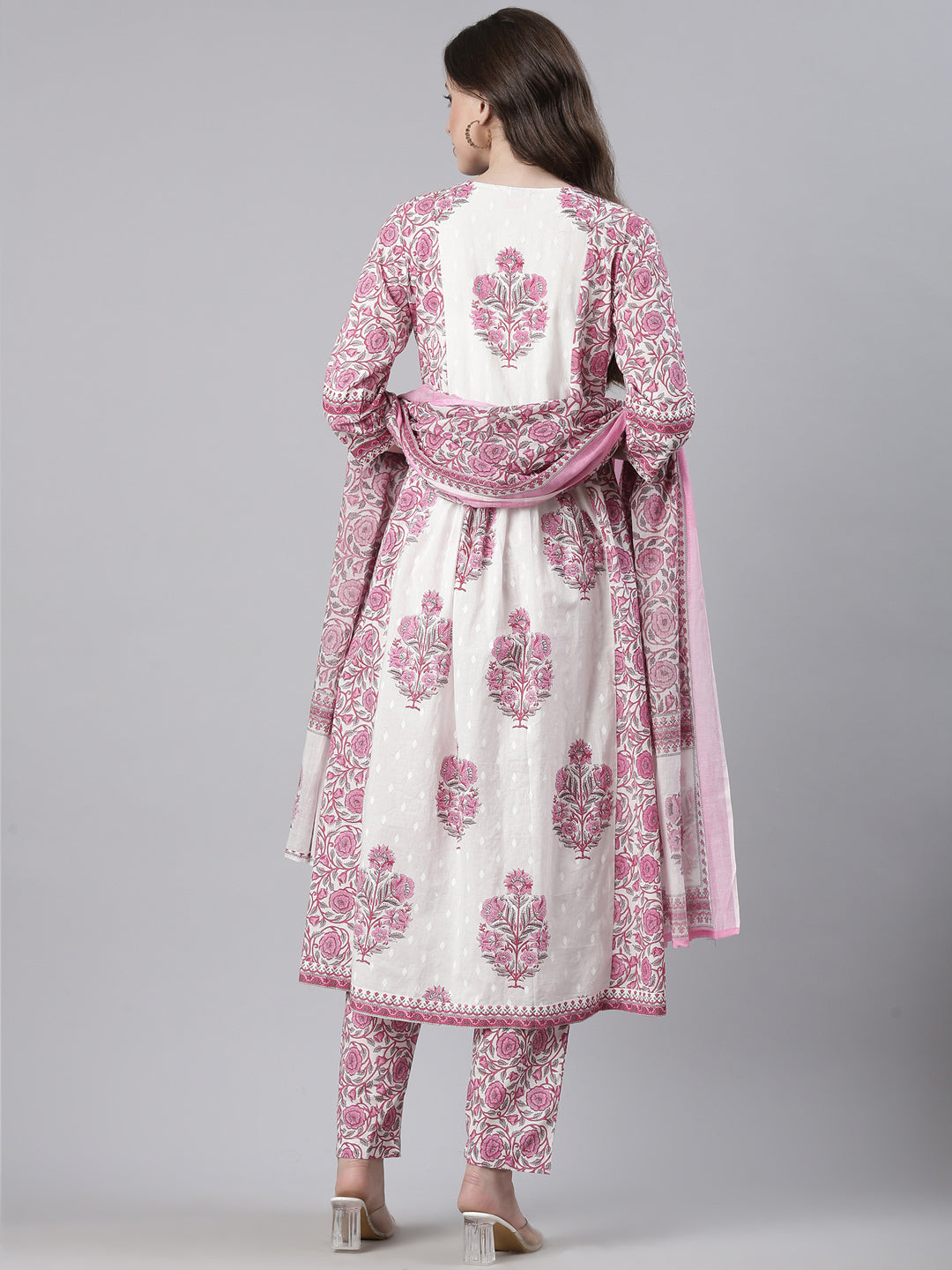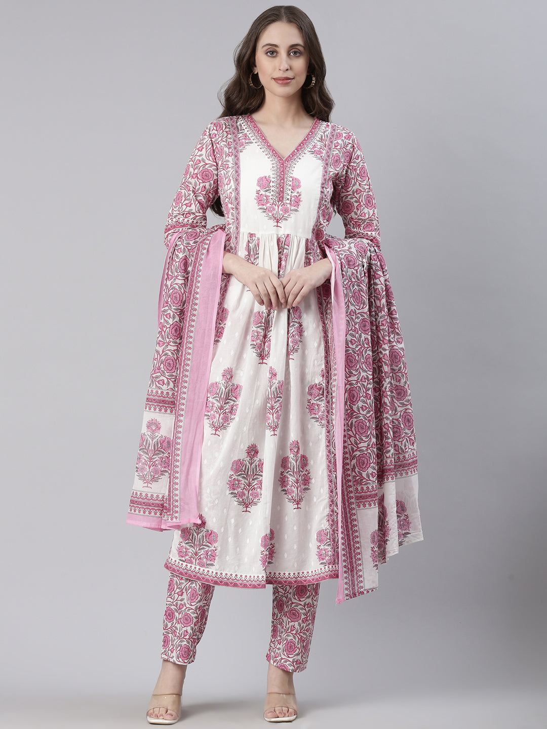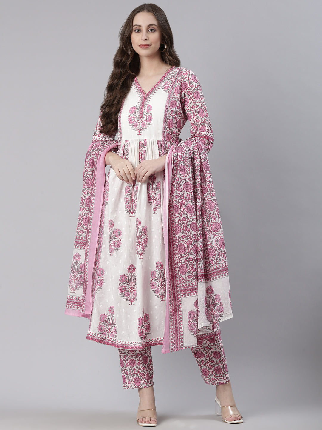 Elevate your wardrobe with the Neerus Pink Printed Straight Kurta and Trousers set, beautifully complemented by a matching dupatta. This ensemble features delicate prints on a soft pink fabric, creating a refined and timeless look.