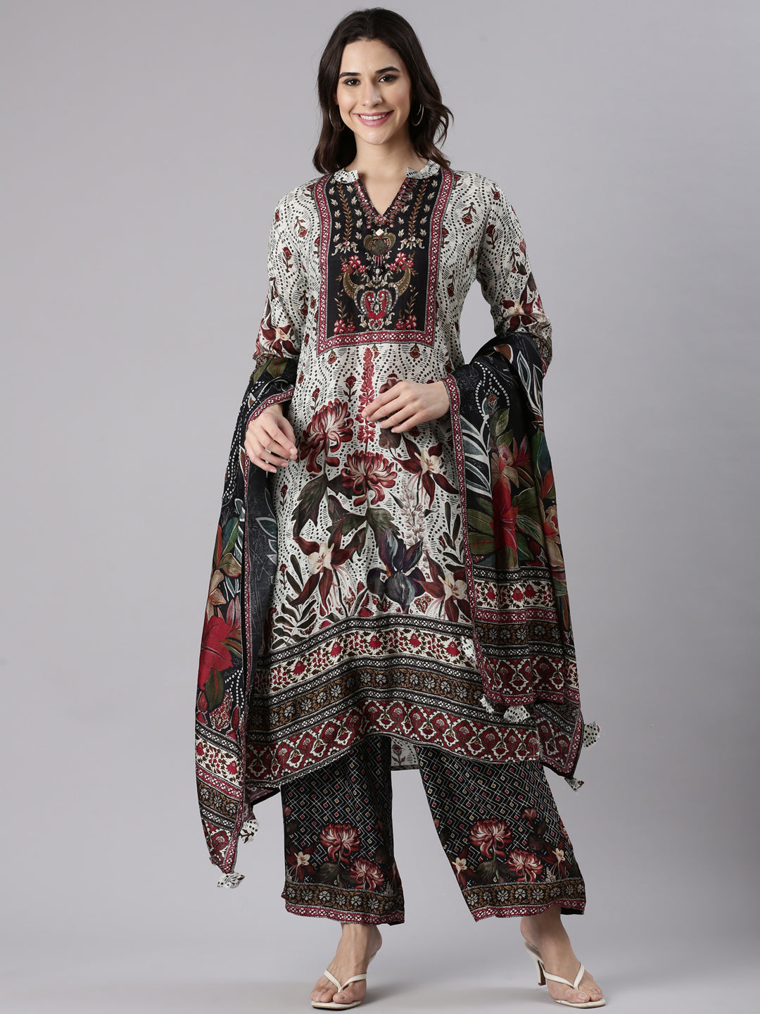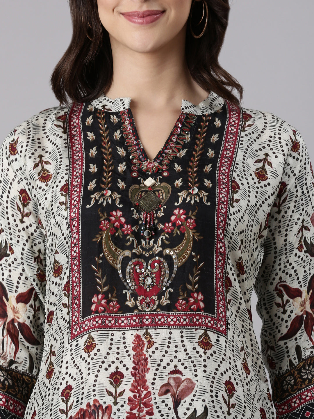 Elevate your wardrobe with this Off White Muslin Printed Three Piece Set, crafted for comfort and style. The lightweight muslin fabric ensures breathability, while the delicate print adds a refined touch. Perfect for sophisticated casual wear, this set combines elegance with effortless ease, making it ideal for both relaxed and formal occasions.
