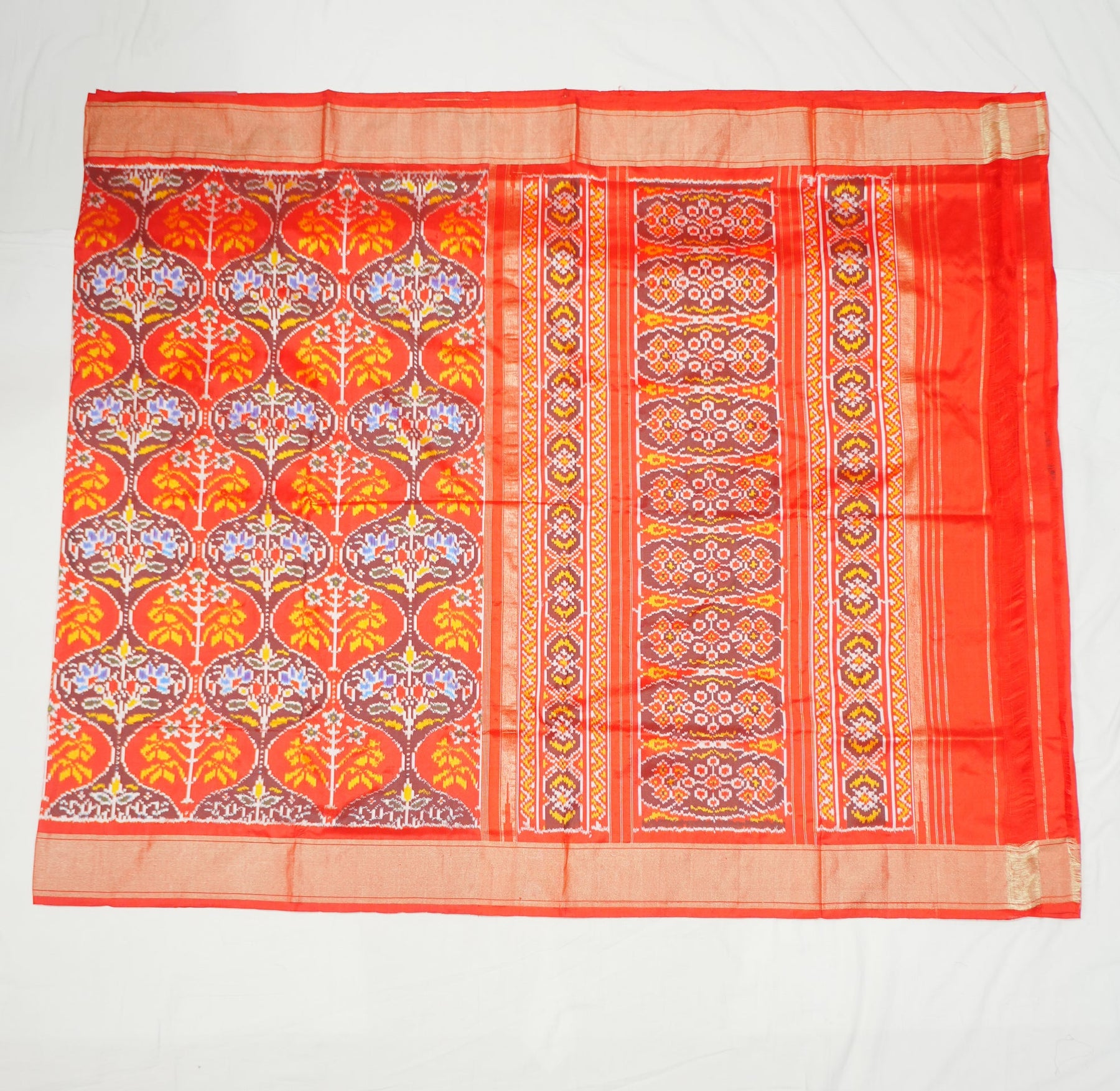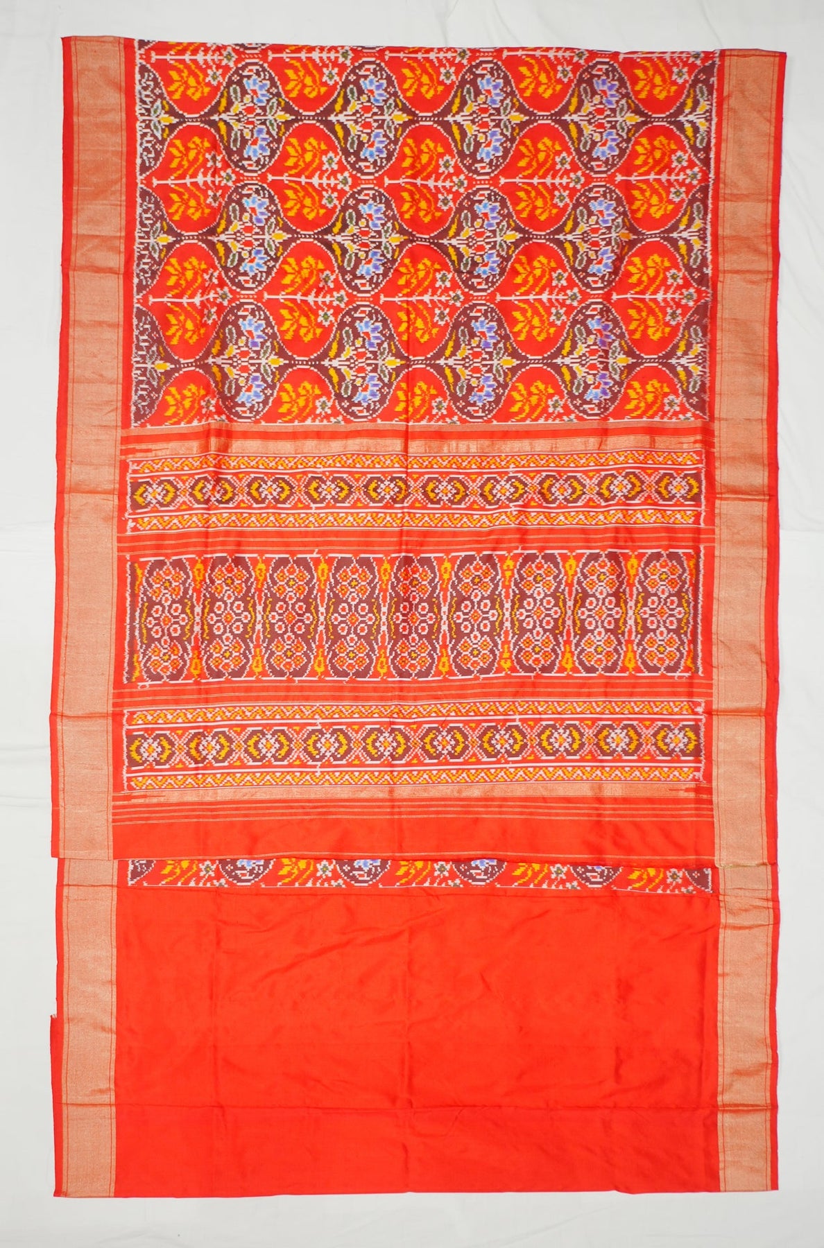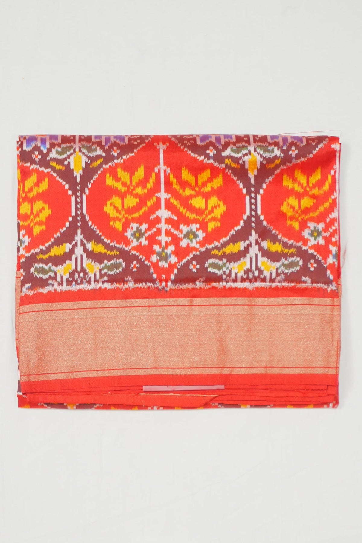 Red Ikat Patola Handloom Saree With Multicolor Border